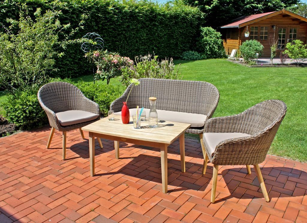 Garten-Sitzgruppe LISBON 4tlg. Kunststoffgeflecht Akazie Braun Gartenmöbel-Set
