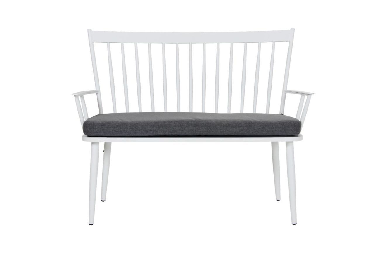 Gartenbank Alvena mit Kissen aus Aluminium und Stoff, klassischer Stil, weiß-grau, fü