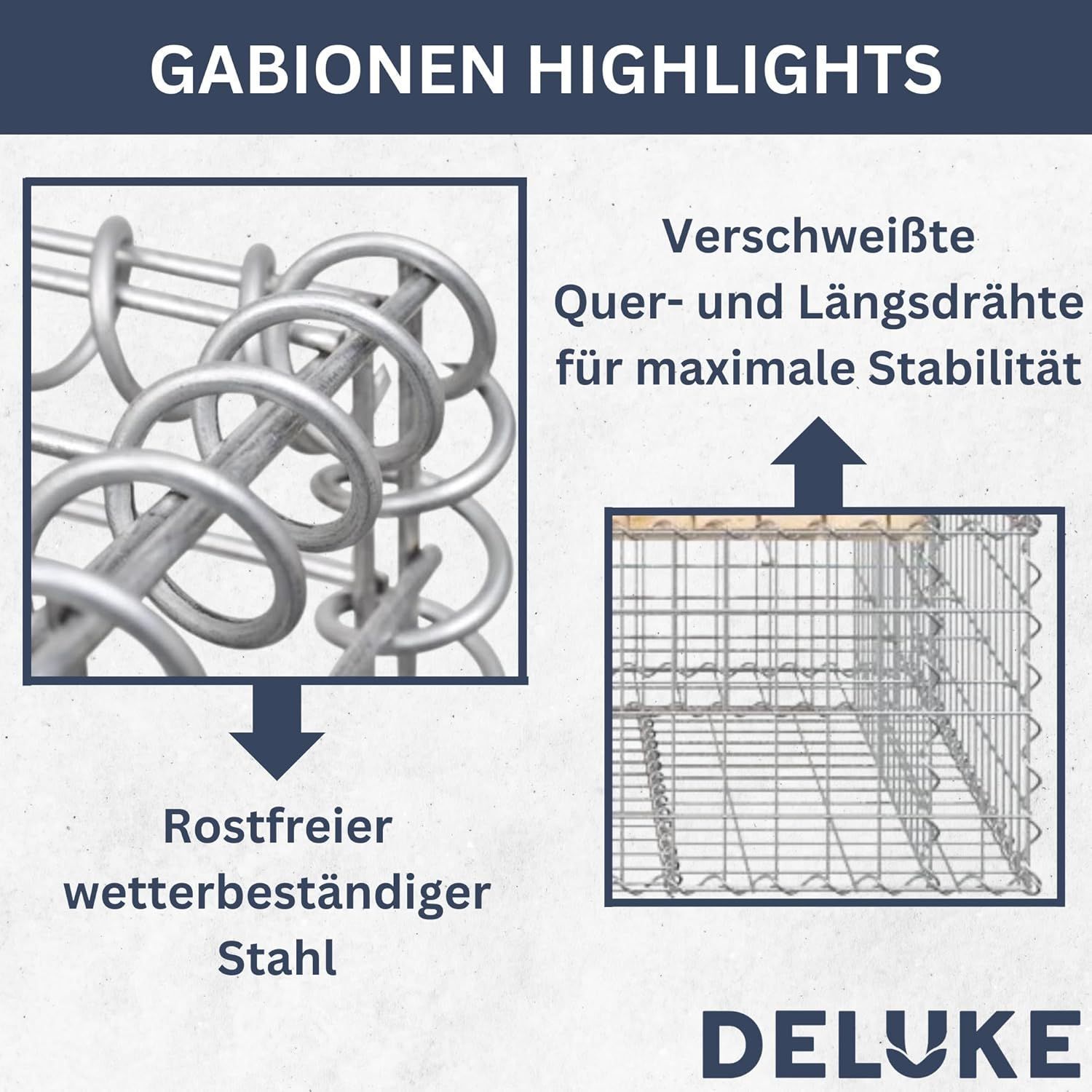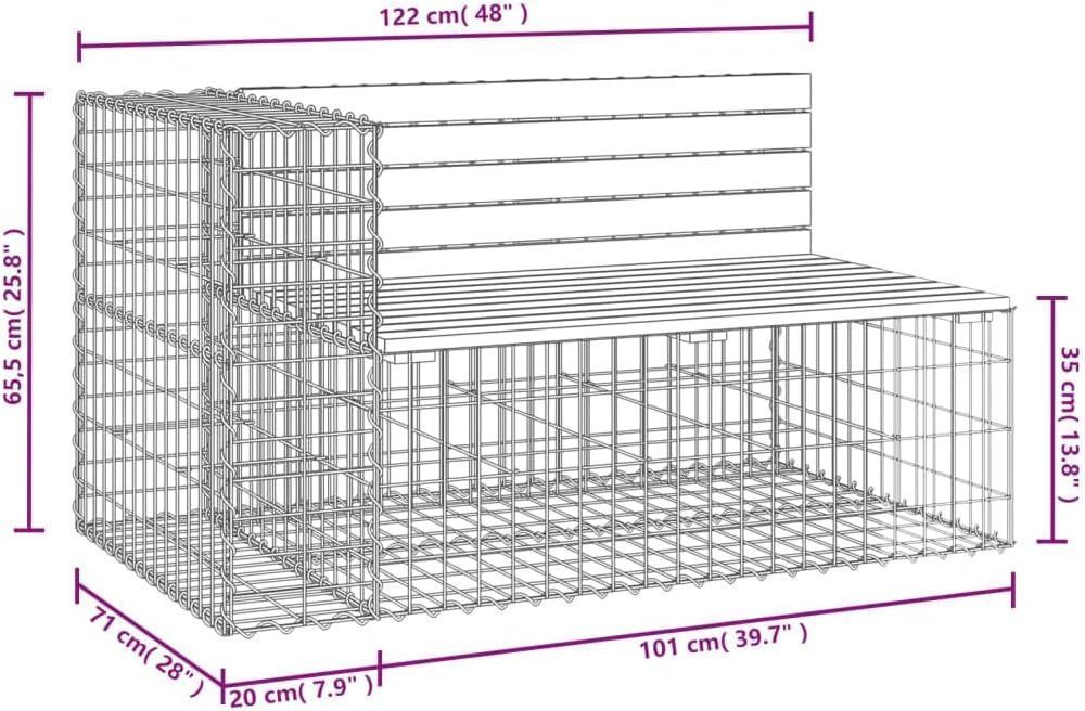 Gartenbank Gabionen INO Stahl 122x71x65,5cm Massivholz Douglasie Gabionenbank