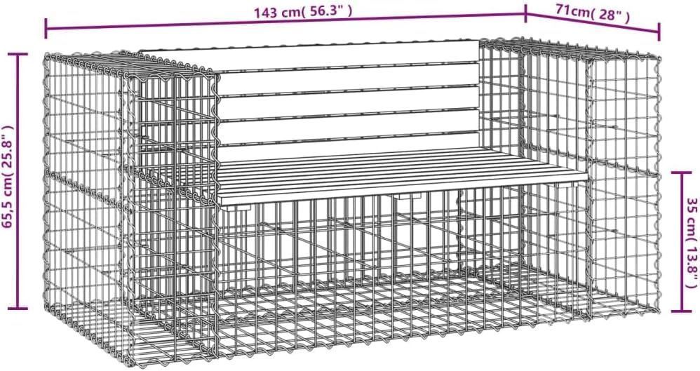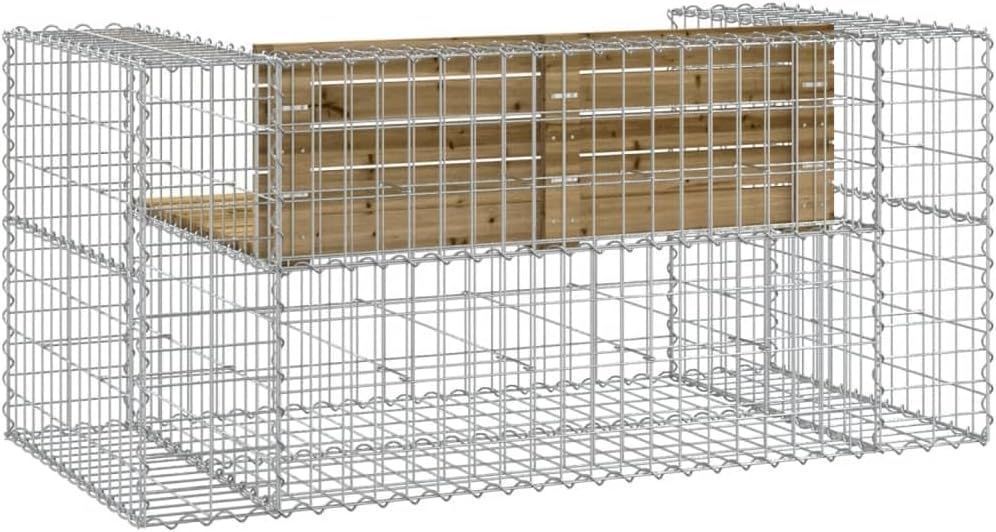Gartenbank Gabionen INO Stahl 143x71x65,5cm Kiefernholz Braun Gabionenbank Gartenbank