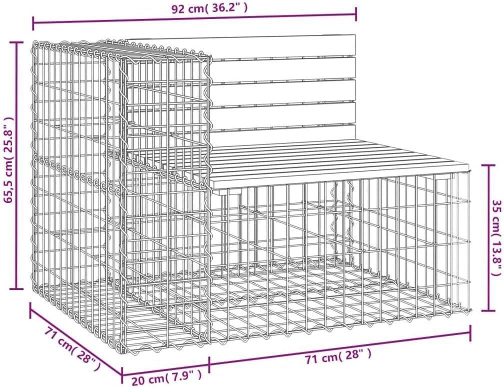 Gartenbank Gabionen INO Stahl 92x71x65,5cm Kiefernholz Braun Gabionenbank Gartenbank