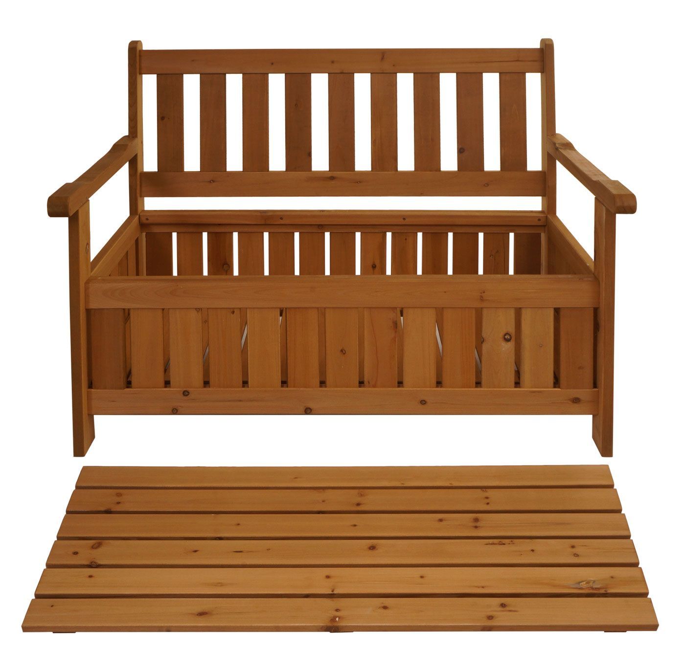 Mendler Gartenbank HWC-L68 mit Stauraum, Truhenbank Sitzbank Staufach, Outdoor Tanne Holz FSC
