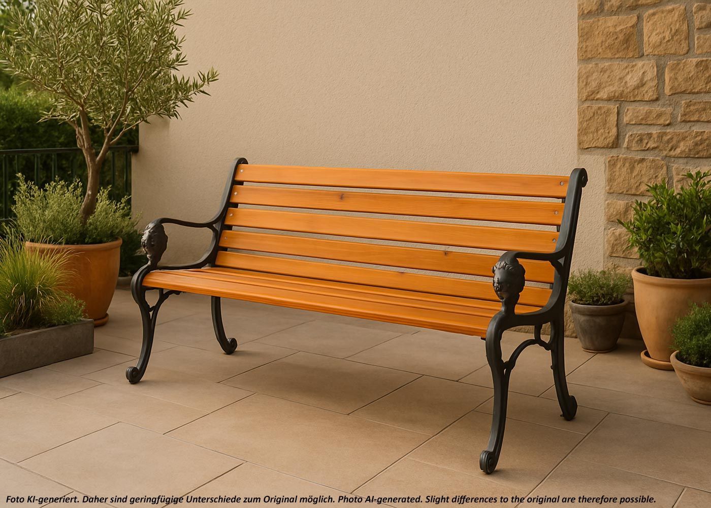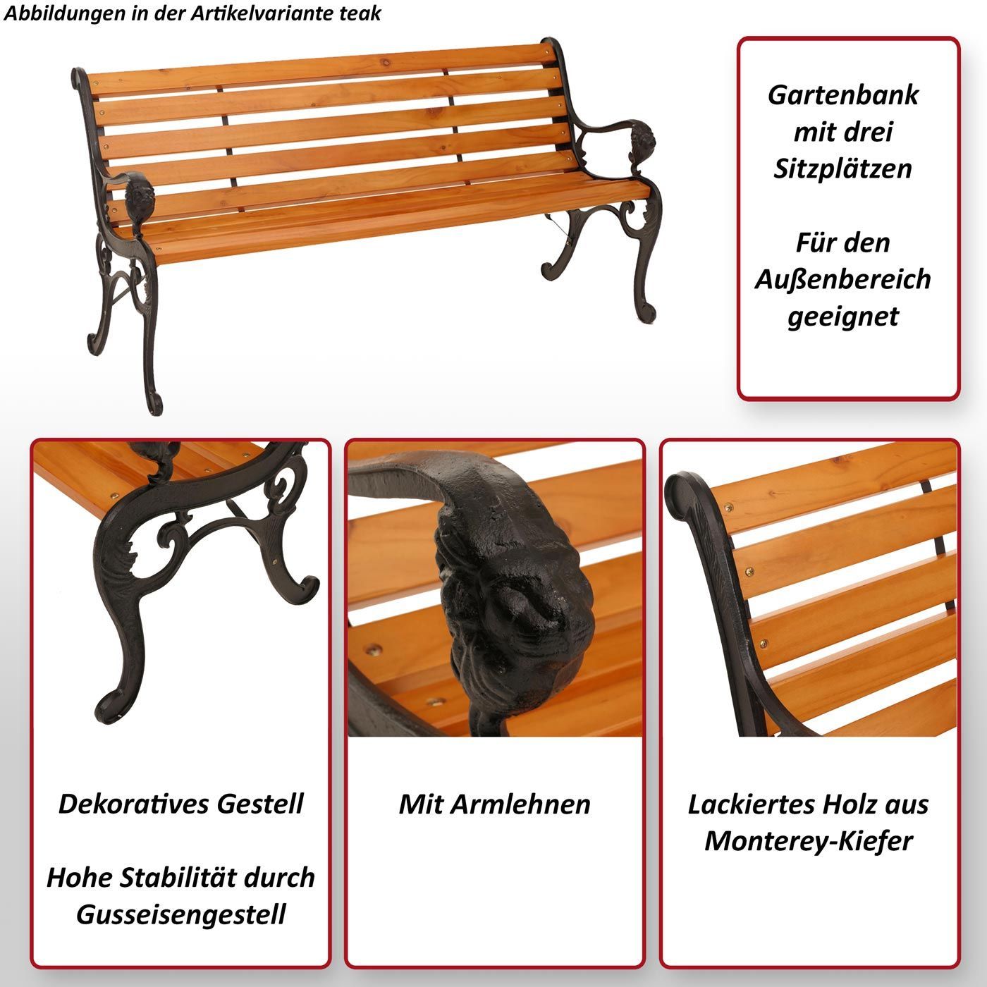 Mendler Gartenbank HWC-O25, Sitzbank Parkbank 3-Sitzer, Gusseisen Holz Kiefer, 164cm