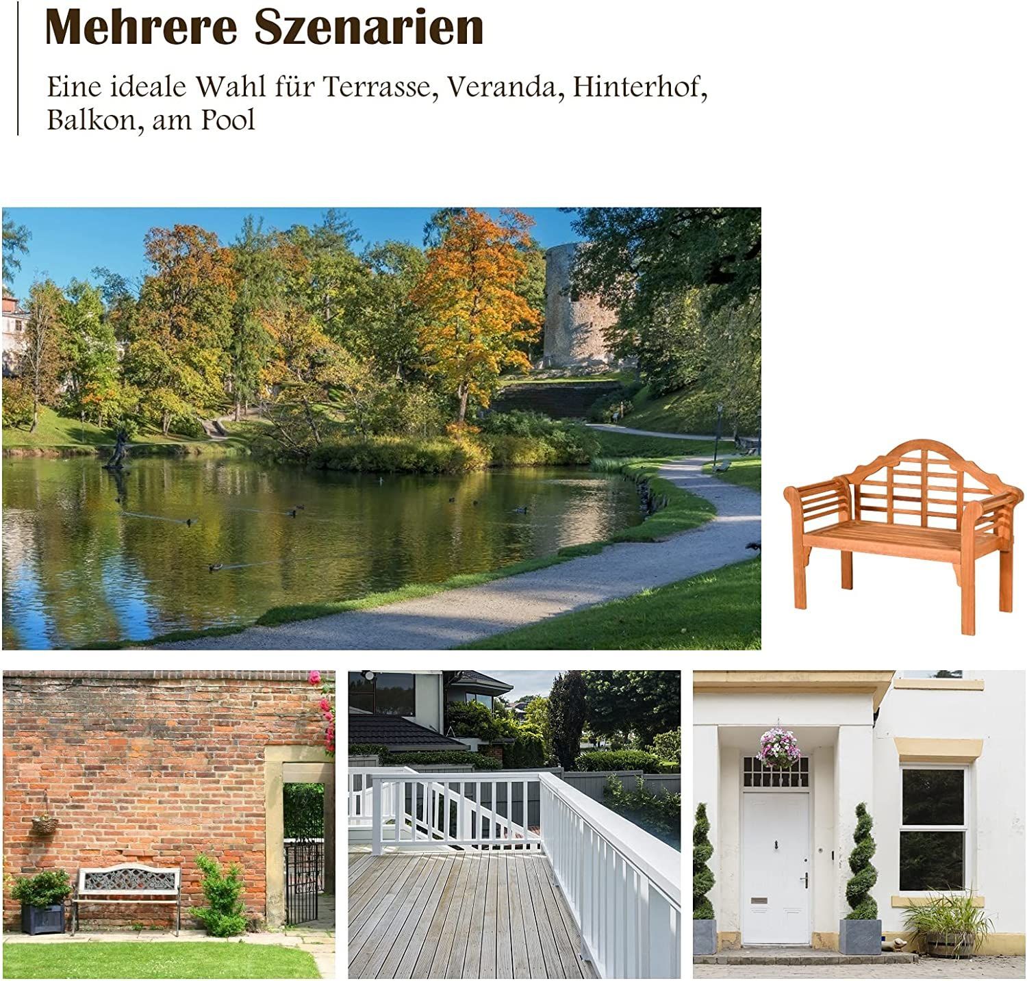 Gartenbank klappbar bis 360kg belastbar, Massive Holzbank aus Eukalyptus 2-3 Sitzer
