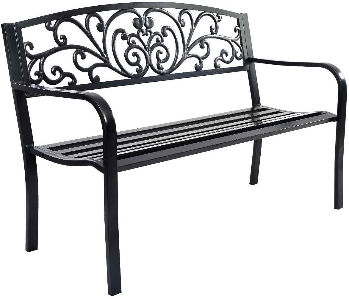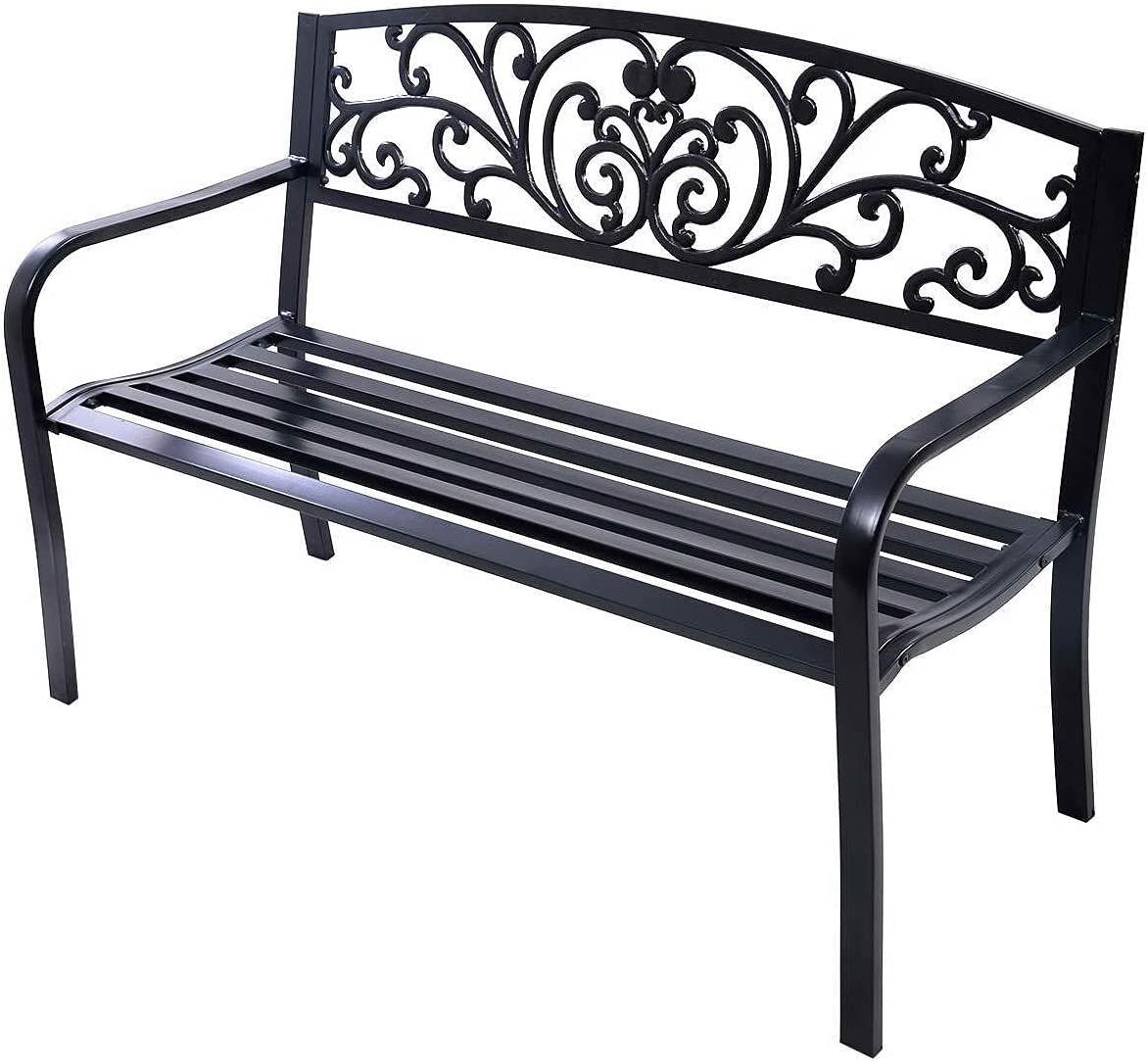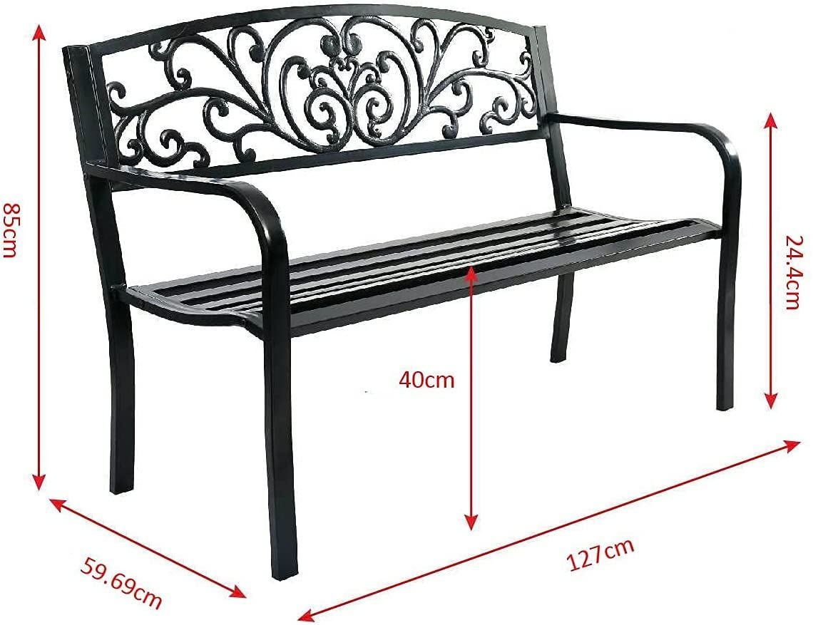 Gartenbank Parkbank Eisenbank Gartenmöbel Stahlrahmen Sitzbank aus Gusseisen Schwarz