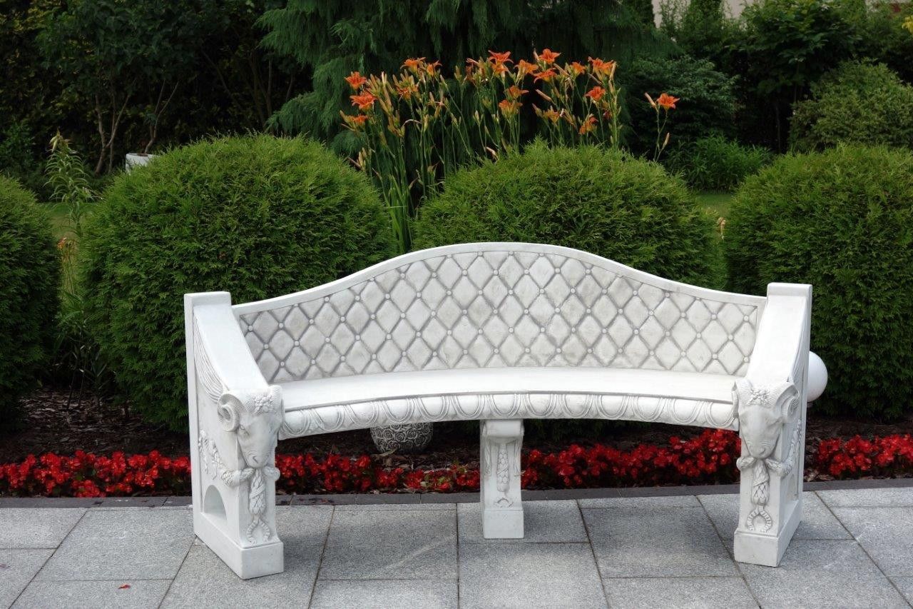 Gartenbank Sitzbank Römerbank Steinbank Gartenmöbel Parkbank Weiß Grau