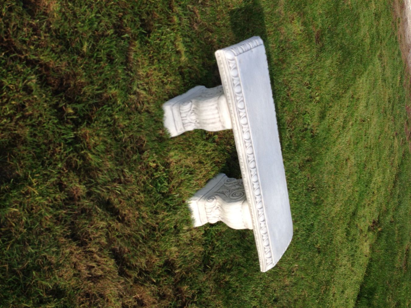 Gartenbank Sitzbank Römerbank Steinbank Bank. Maße: Höhe: 44cm Tiefe: 37cm Länge: 125cm Gesamtgewicht: 124KG Material: Betonwerkstein Die Bank besteht aus drei Einzelteilen. Farbe: Weiß-Grau-Patina Frostsicher - Winterfest