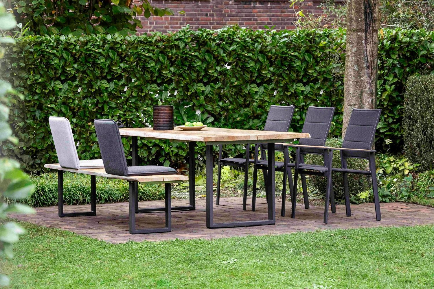 Gartenbank Solido 240x45 Sitzfläche Teakholz Baumkante Profilkufe Alu Anthrazit