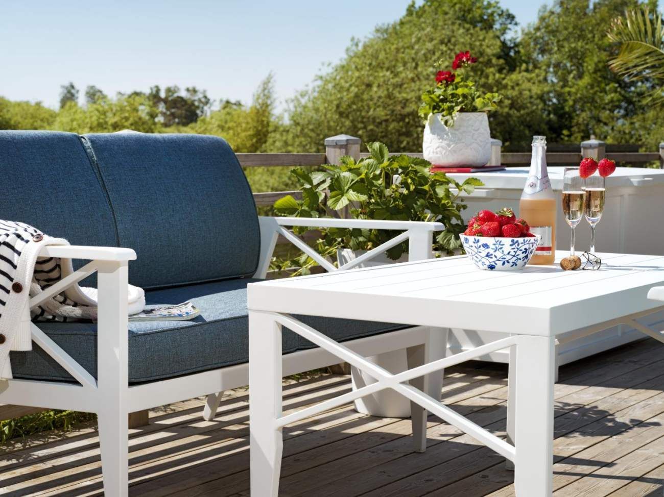 Gartenbank Sottenvile mit Kissen aus Aluminium und Olefin-Stoff, klassisch, blau, für