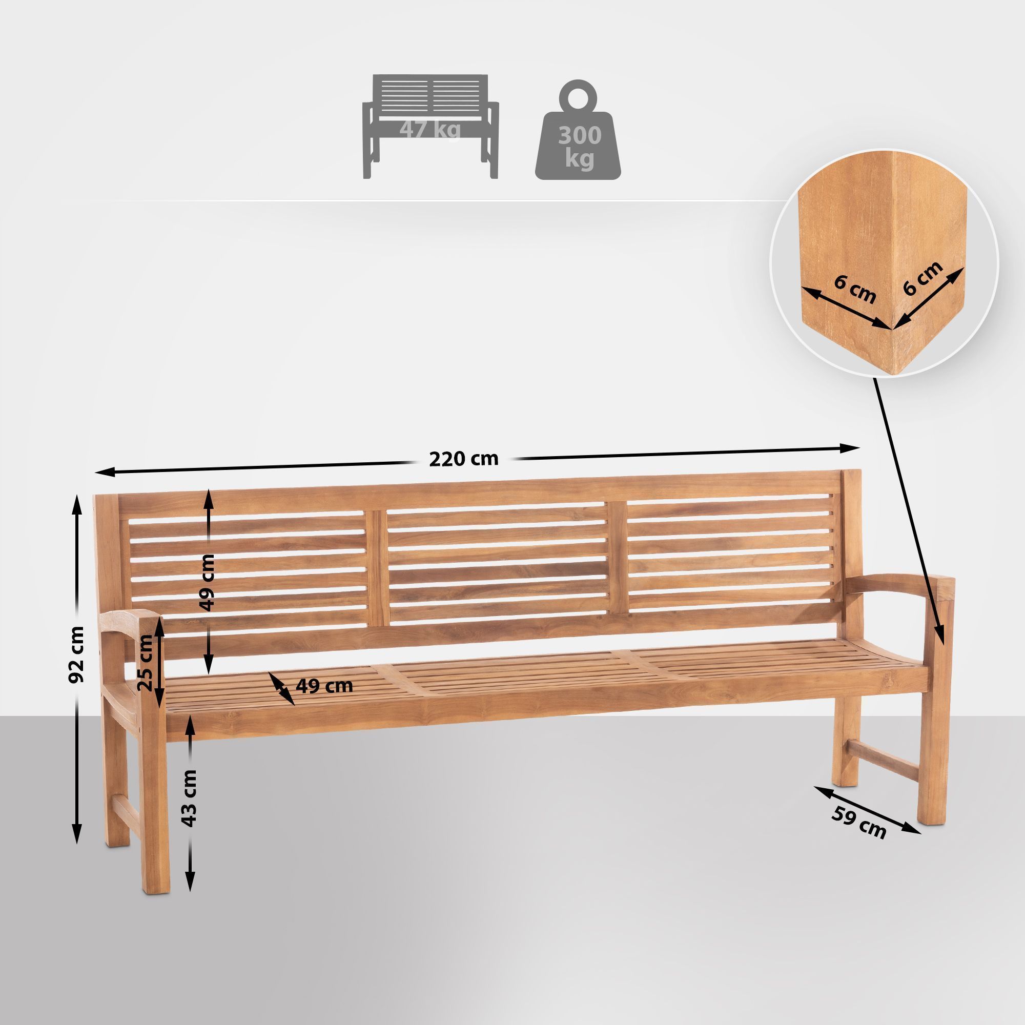 Gartenbank Teakbank DAGAD Holz Teak 220x59x92 cm Holzbank 220 Cm Gartenbank Sitzbank