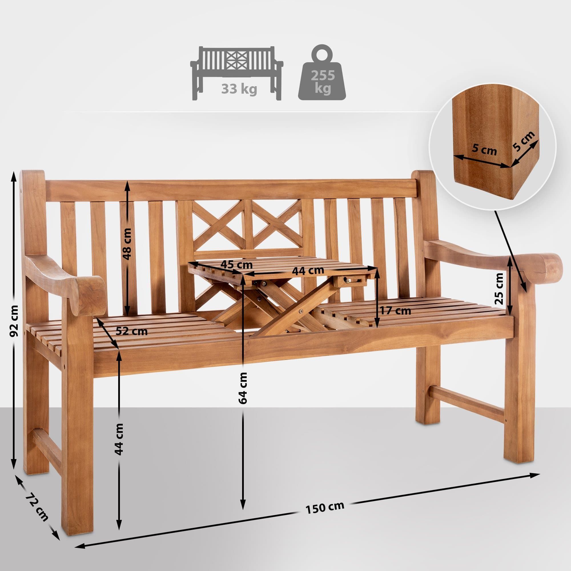 Gartenbank Teakbank PAKEL Holz Teak 150x72x92 cm Holzbank 150 Cm Mit Klapptisch