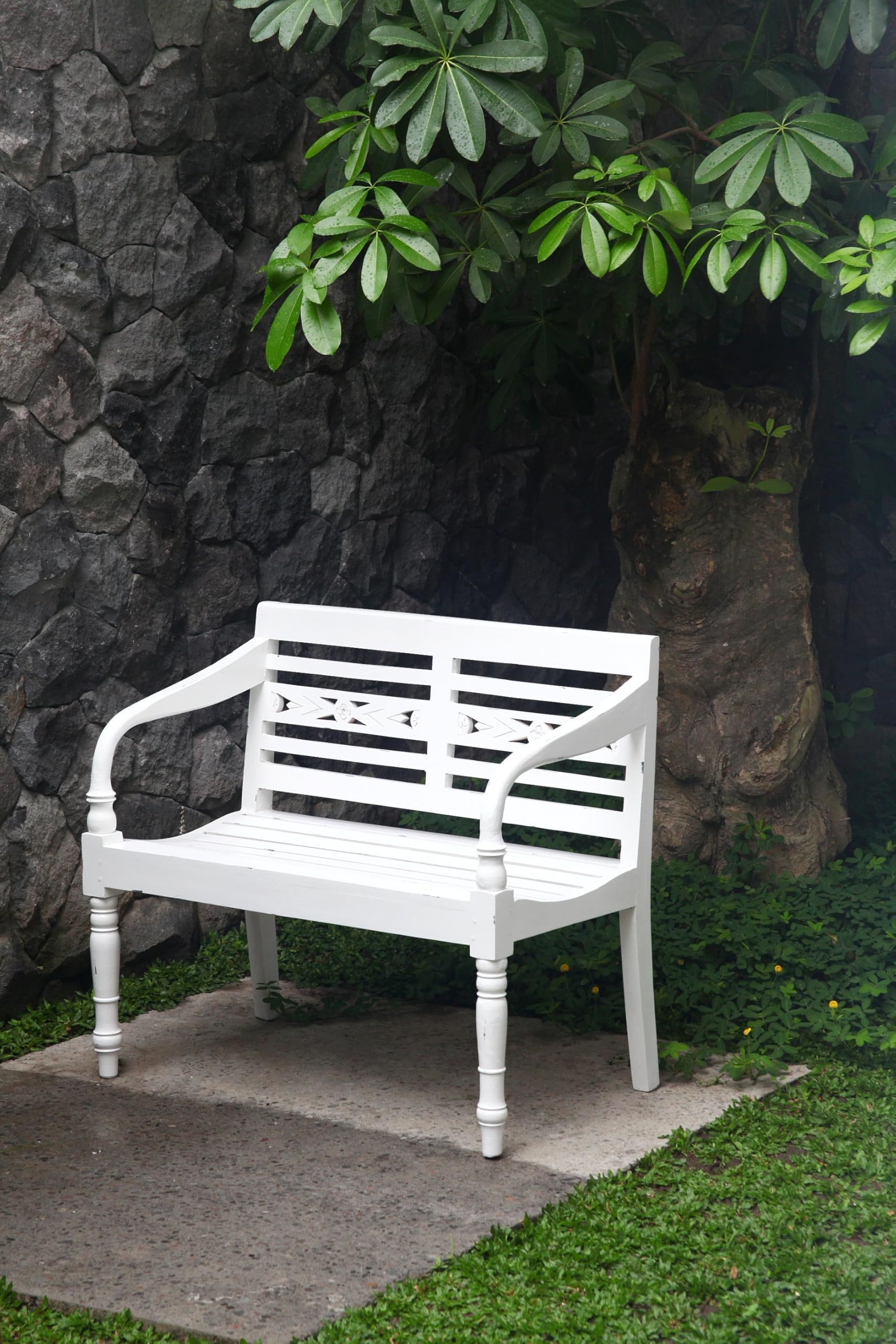 Gartenbank TOMAS 2-Sitzer 100cm Breit Mahagoni Weiß Terrassenbank Wetterfest Sitzbank