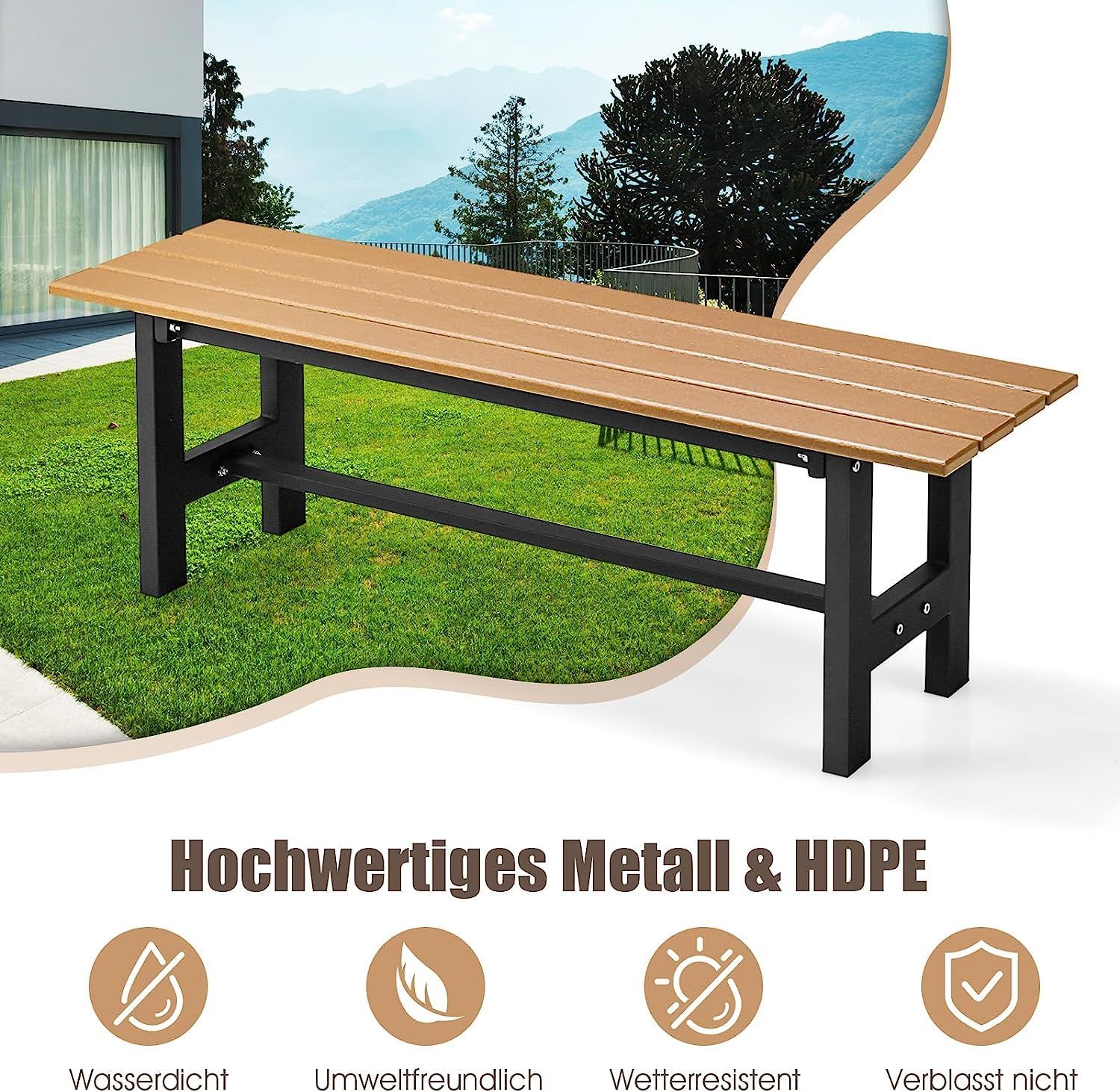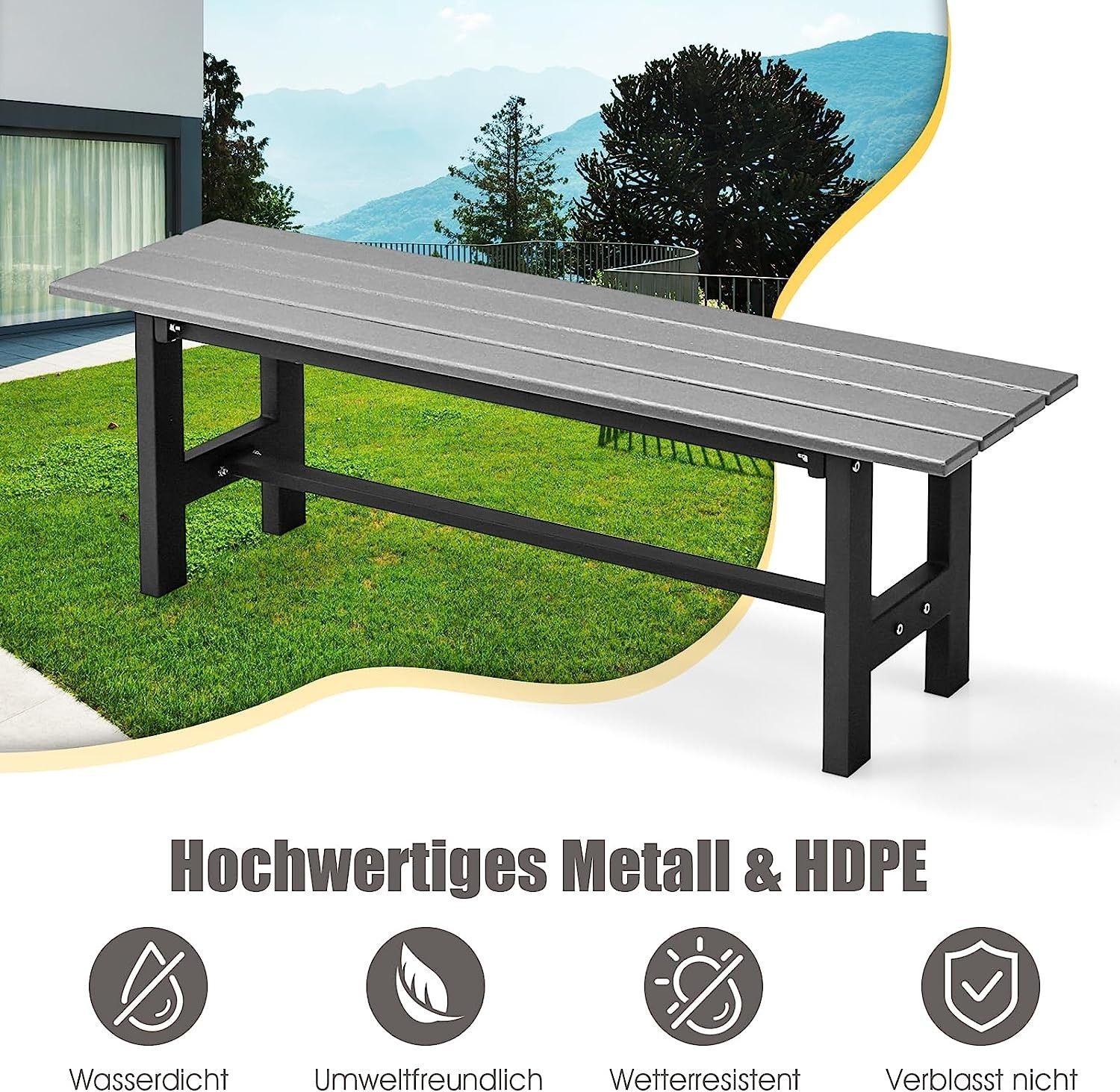 Gartenbank wetterfest, 2-Sitzer Sitzbank bis 300kg belastbar, Allwetter-Parkbank