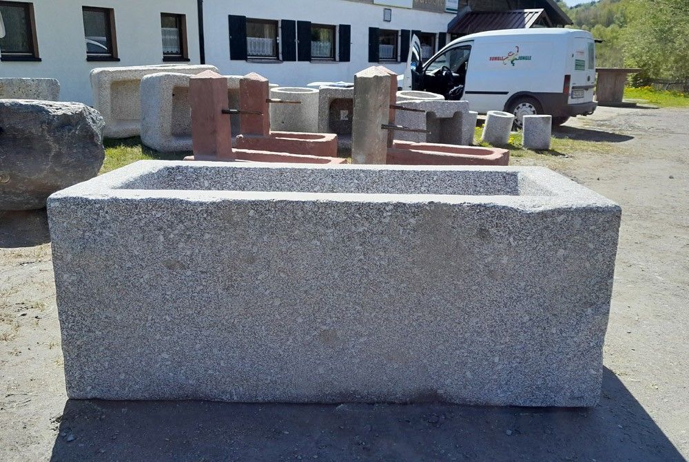 Rechteckiger Granitbrunnen Abmessungen - Länge x Breite x Höhe: 140 x 65 x 56 cm, Gewicht: 720 kg Ideal als Brunnenbecken für Wasser. Preis: Euro 1385,71 zzgl. MwSt. = Euro 1649,-- Versand per Spedition und kostenlose Selbstabholung möglich. Wir haben mehrere solcher Brunnen und Steintröge für Wasse... Mehr