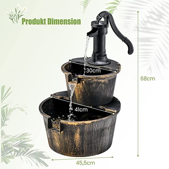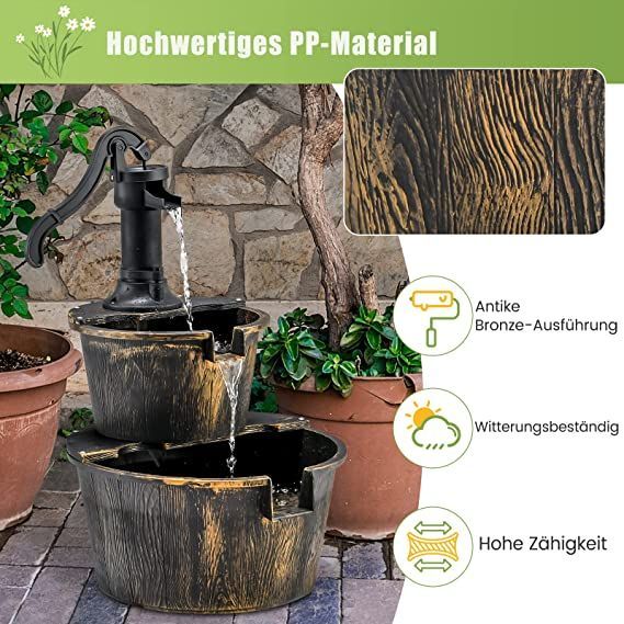 Gartenbrunnen mit Wasserpumpe, Zierbrunnen Gartendeko Brunnen für Garten, Terrasse