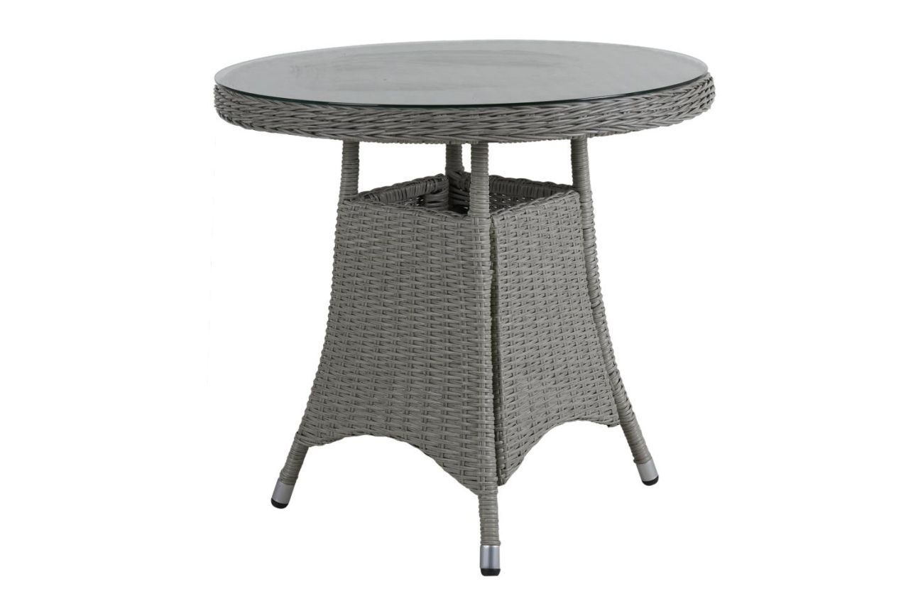 Gartenesstisch Hornbrook, aus Kunst-Rattan mit Glasplatte, klassisch rund, grau,