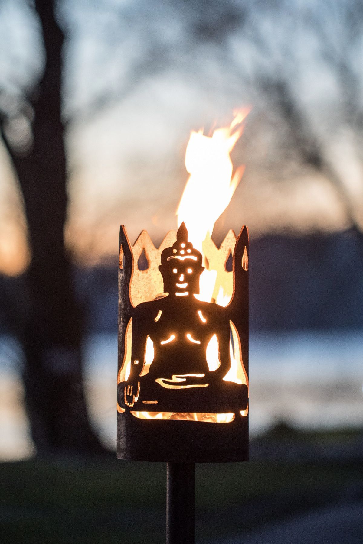Gartenfackel Buddha Set inkl. variablen Stiel und 2 Wachsrollen Feuerflair