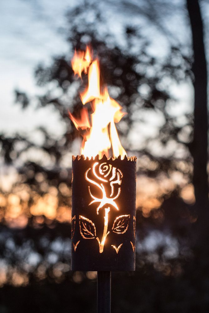 Gartenfackel Rose Set Stiel und Wachsrolle Feuerflair