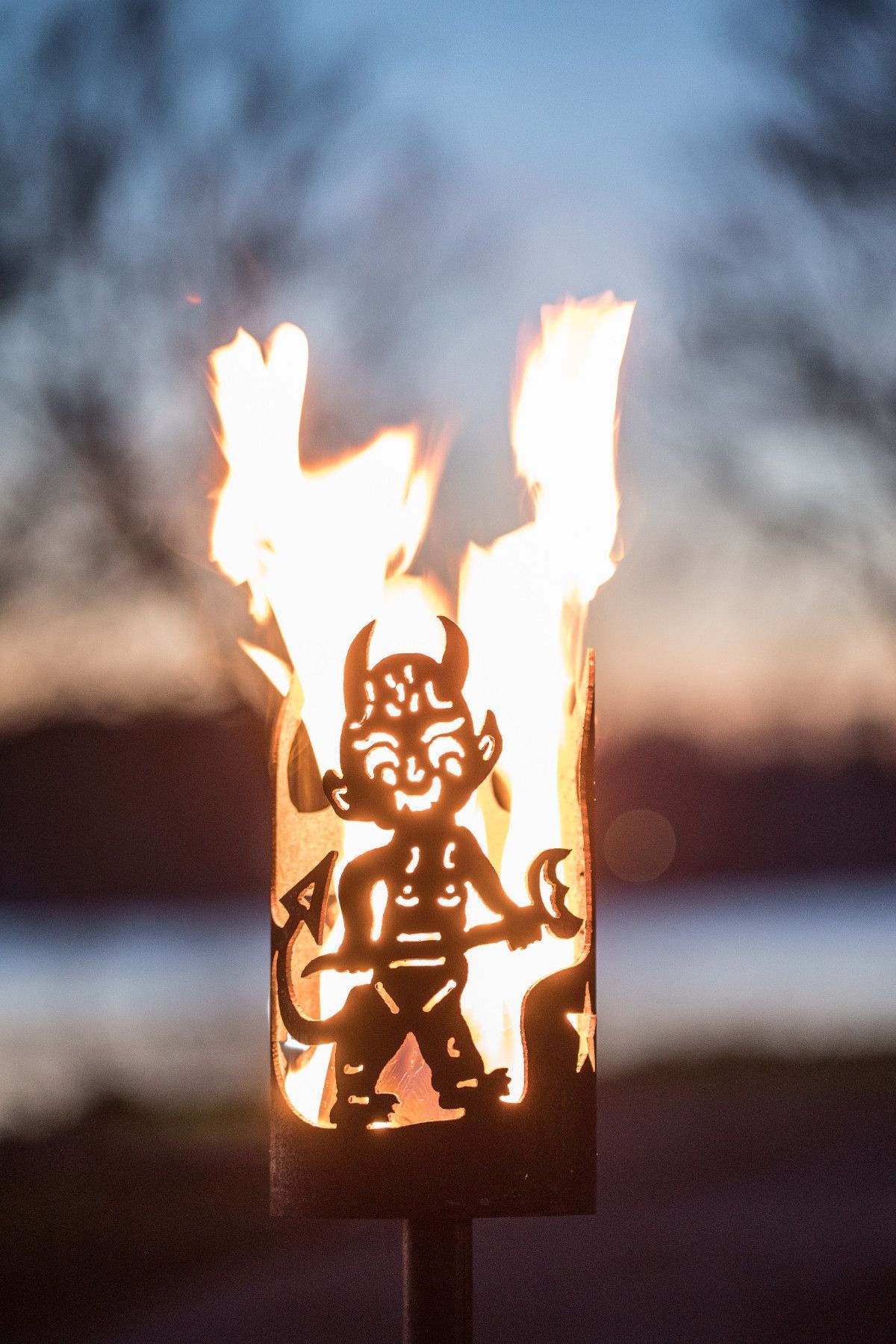 Gartenfackel Teufelchen Set inkl. Stiel und Wachsrolle Teufel Fackel