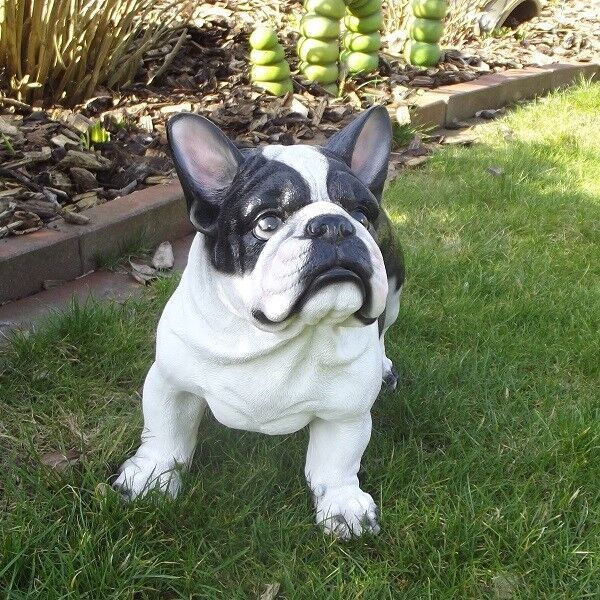 Gartenfigur Hund Französiche Bulldogge 3376 / 1509 schwarz / weiß Garten Figur