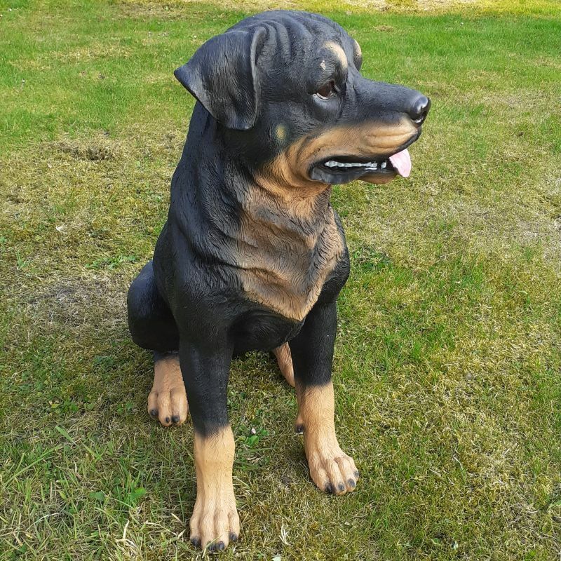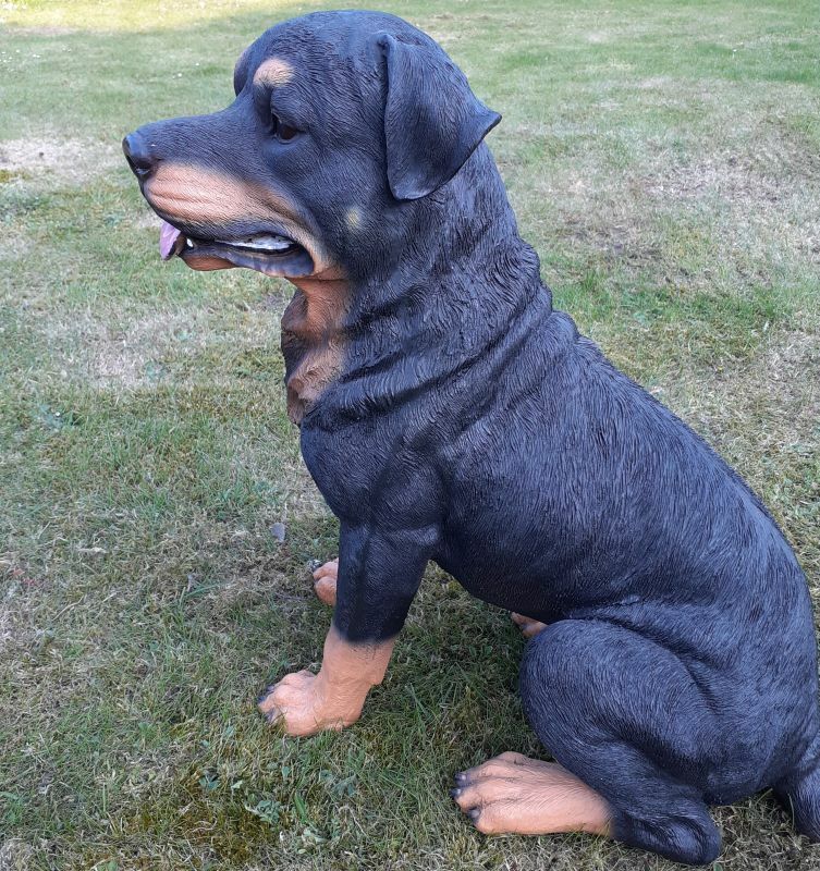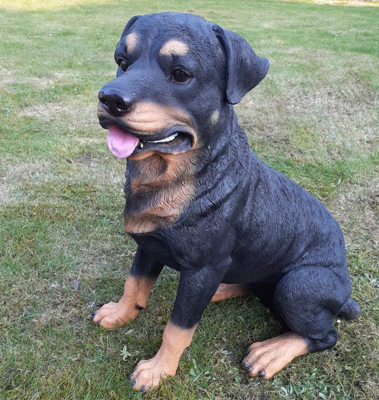 Gartenfigur Hund Rottweiler schwarz 50cm 2695 Garten lebensecht Figur