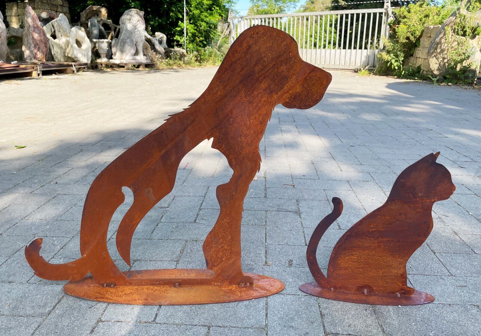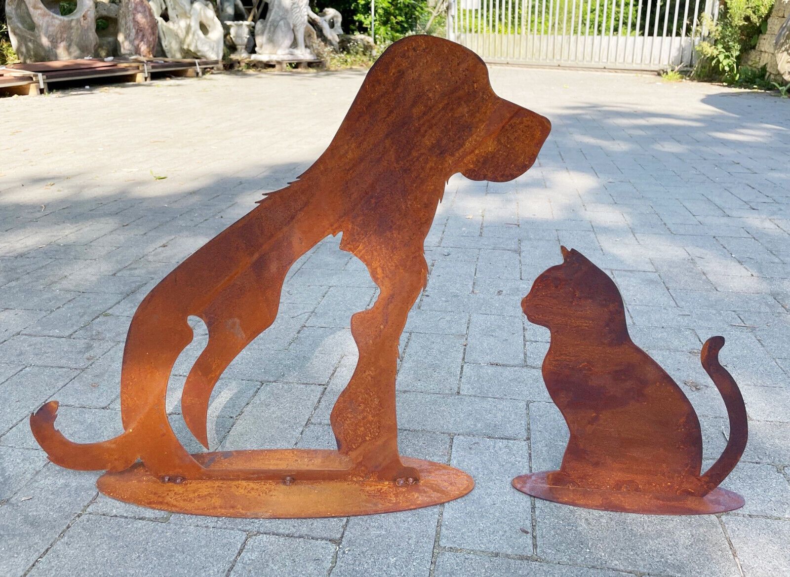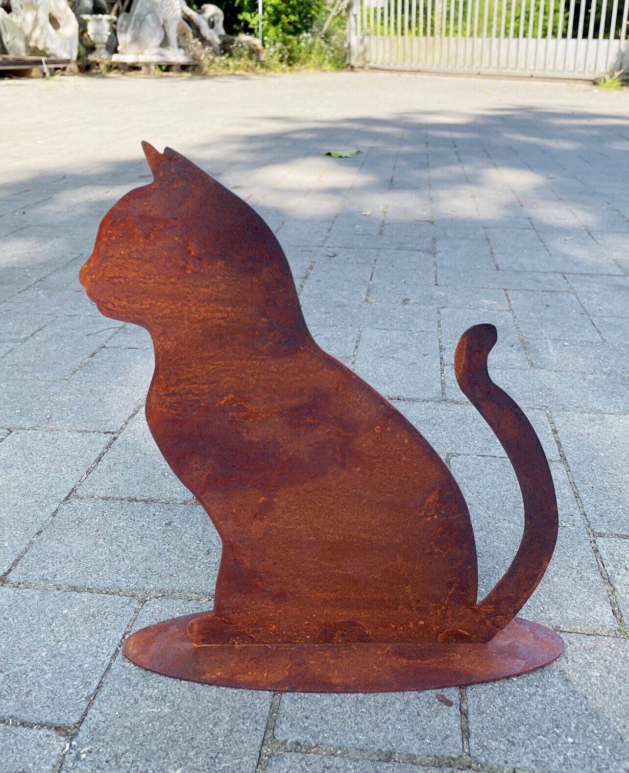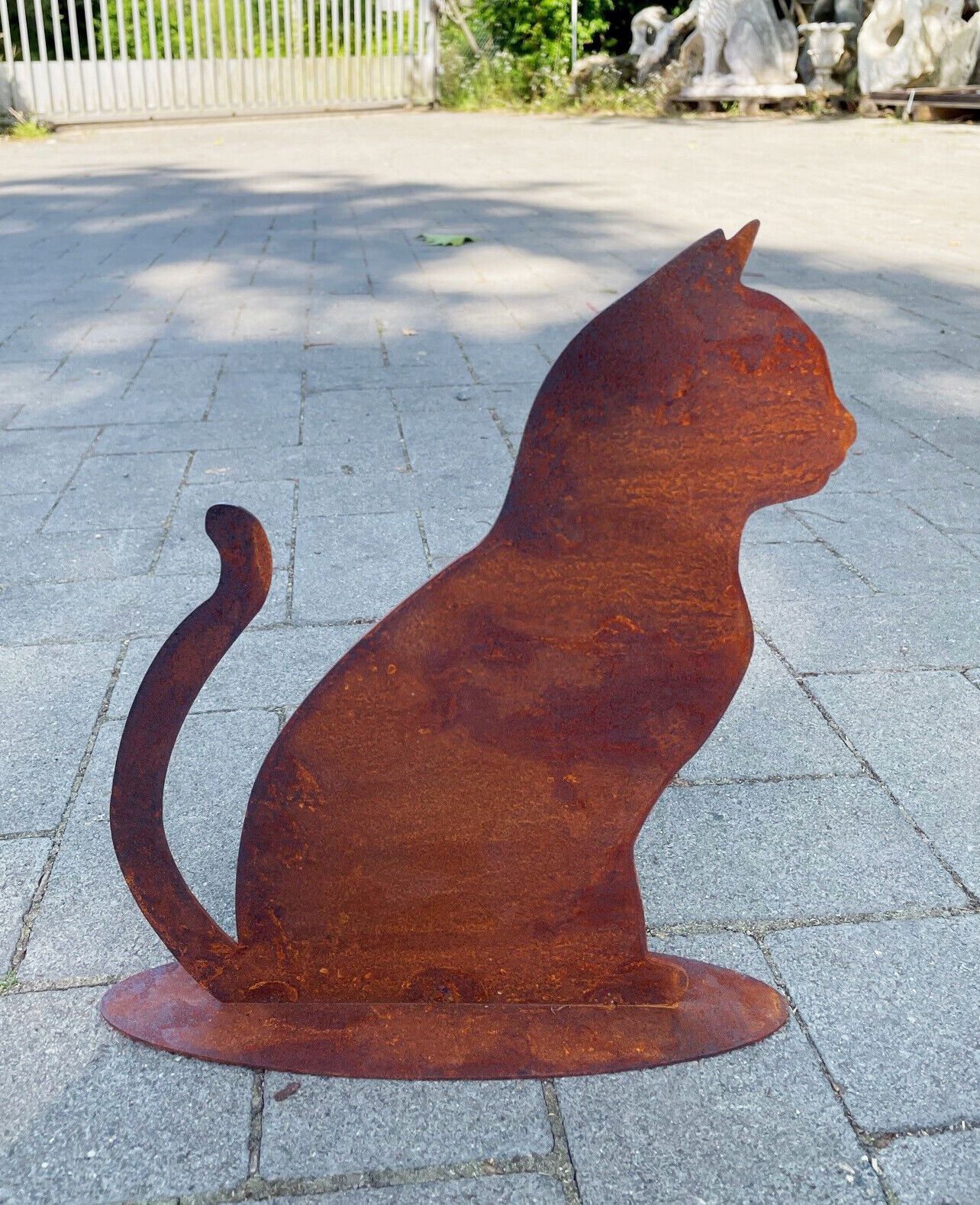 Gartenfigur Katze sitzend 30x25cm auf Platte Rost Edelrost Metall Tierfigur