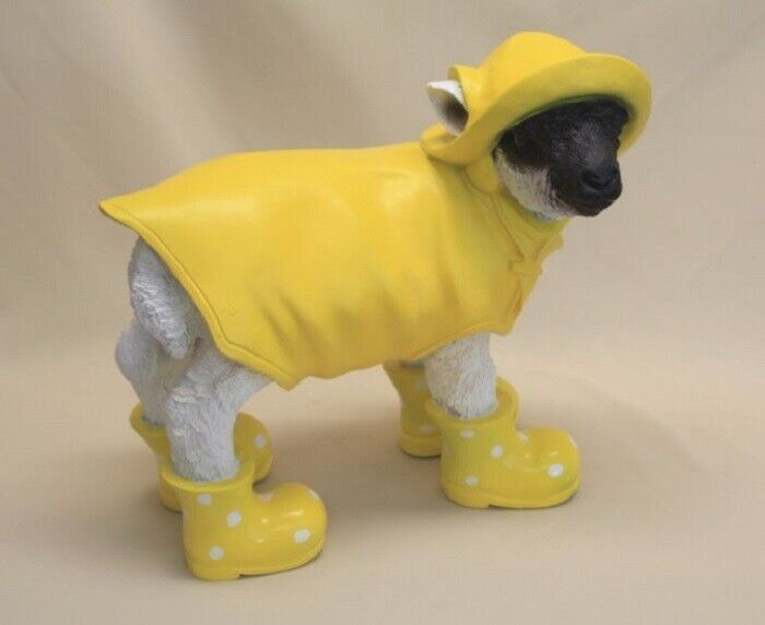 Gartenfigur Lamm ca. 47cm Schaf Regenmantel + Hut + Gummistiefel gelb 3328