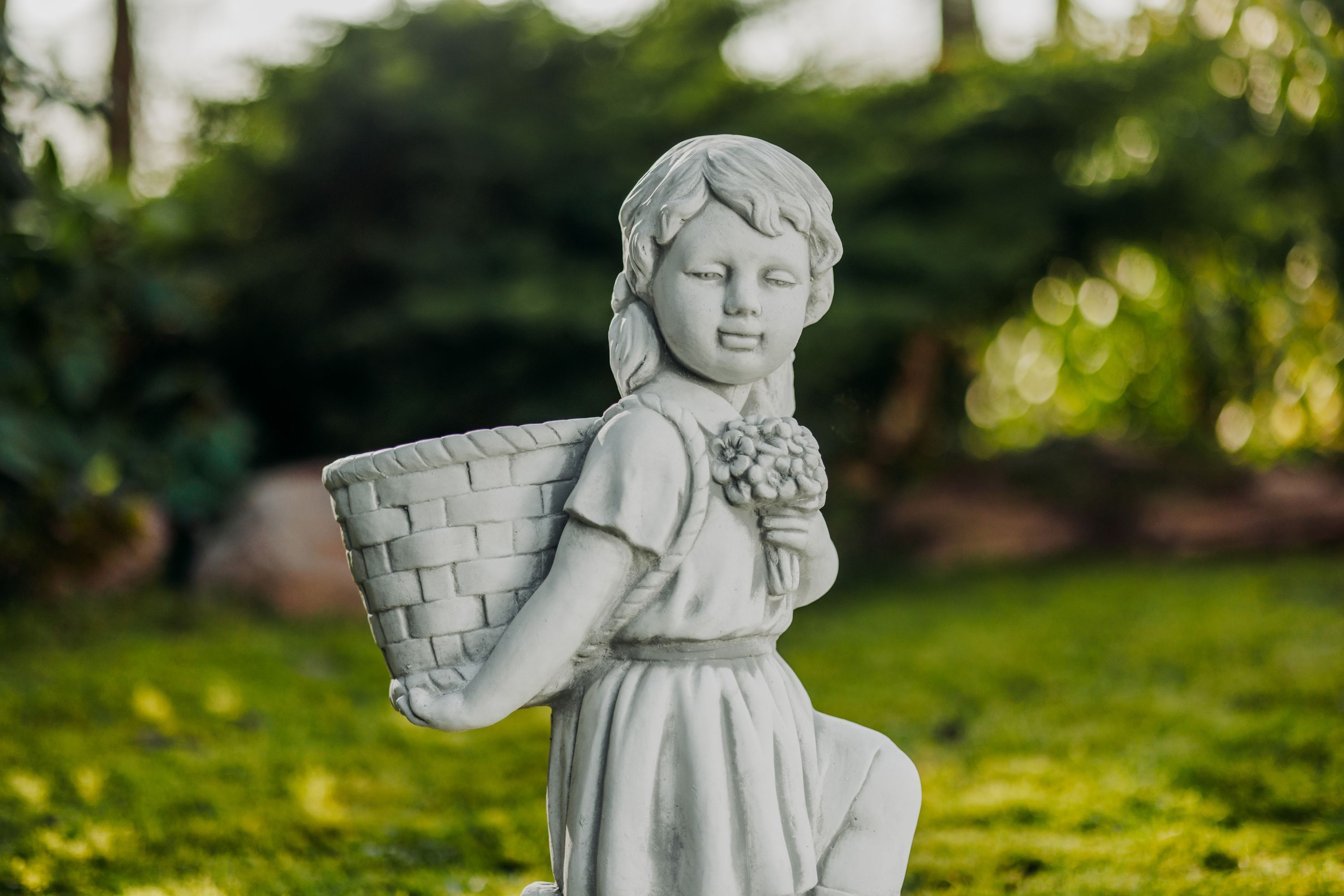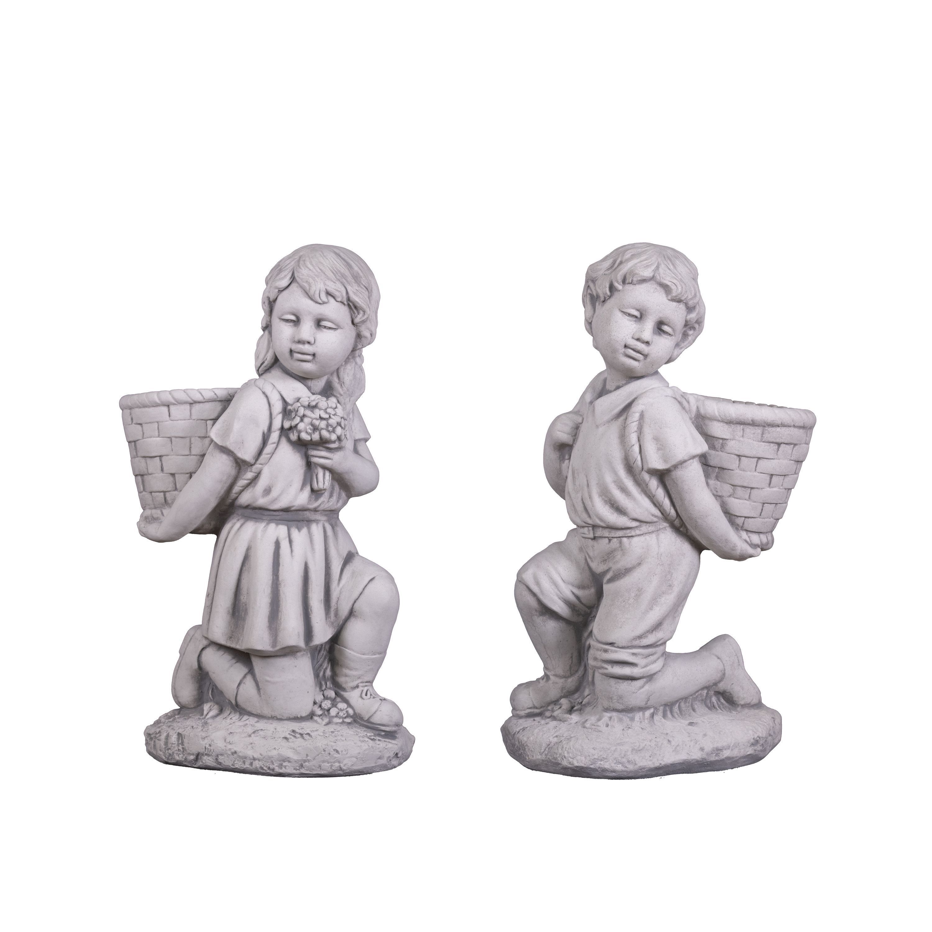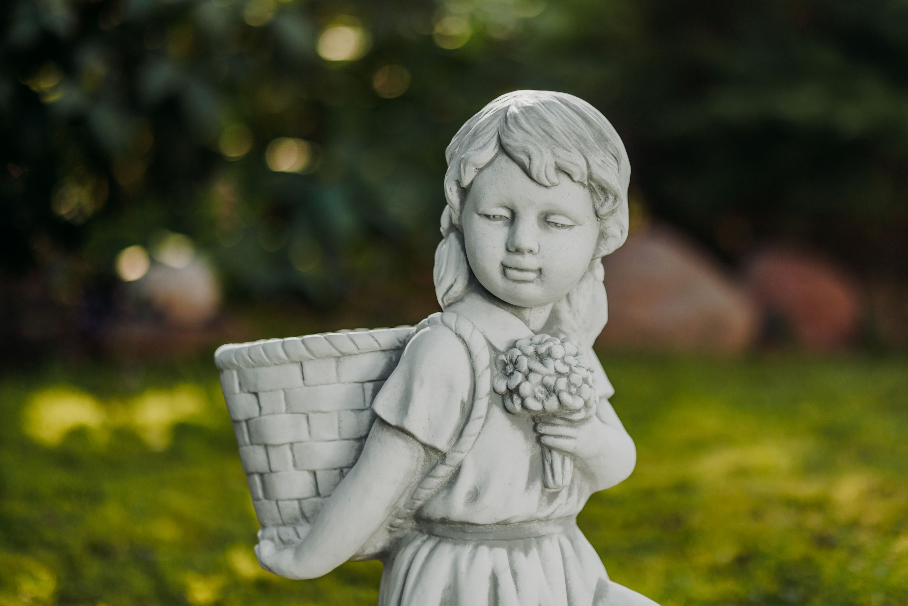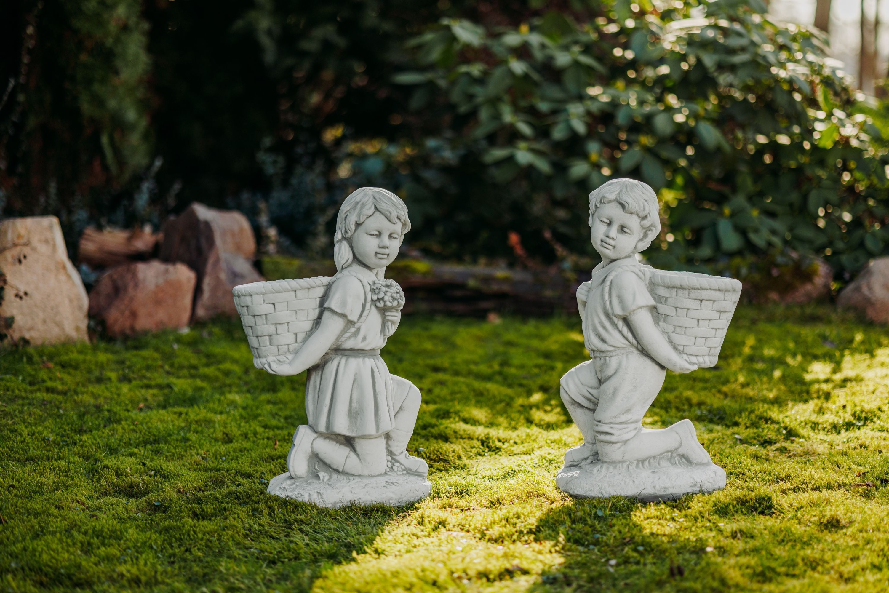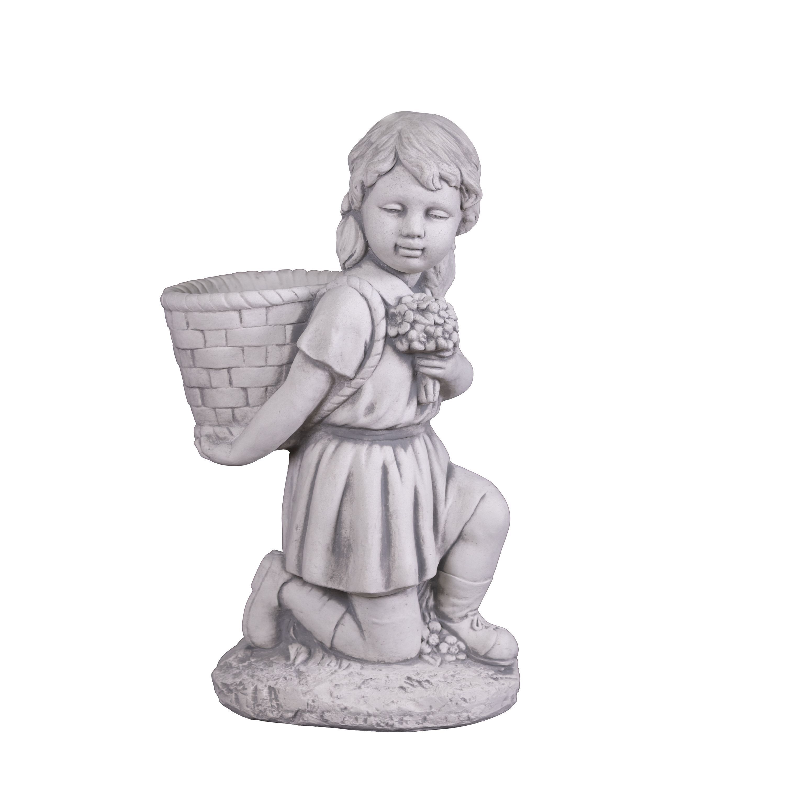Gartenfigur Mädchen mit Pflanzkorb, 55 cm Höhe, 25 kg, Grau, Steinguss, frostsicher
