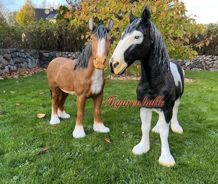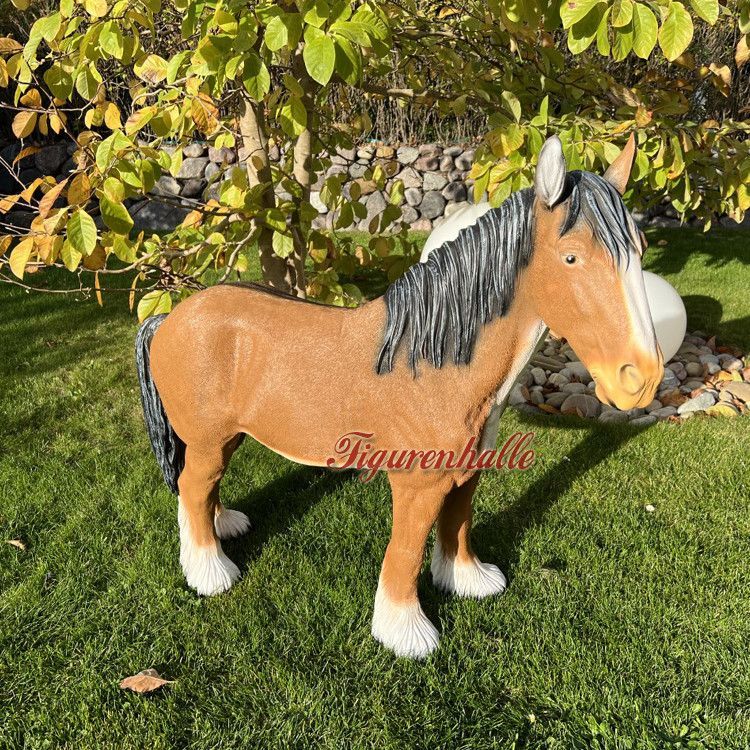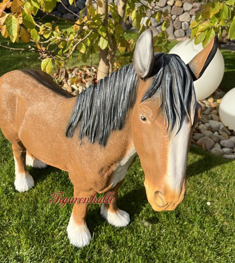 Gartenfigur PFERD Reiter Dekoration Skulptur Hengst GARTEN FIGUR STATUE DEKO braun