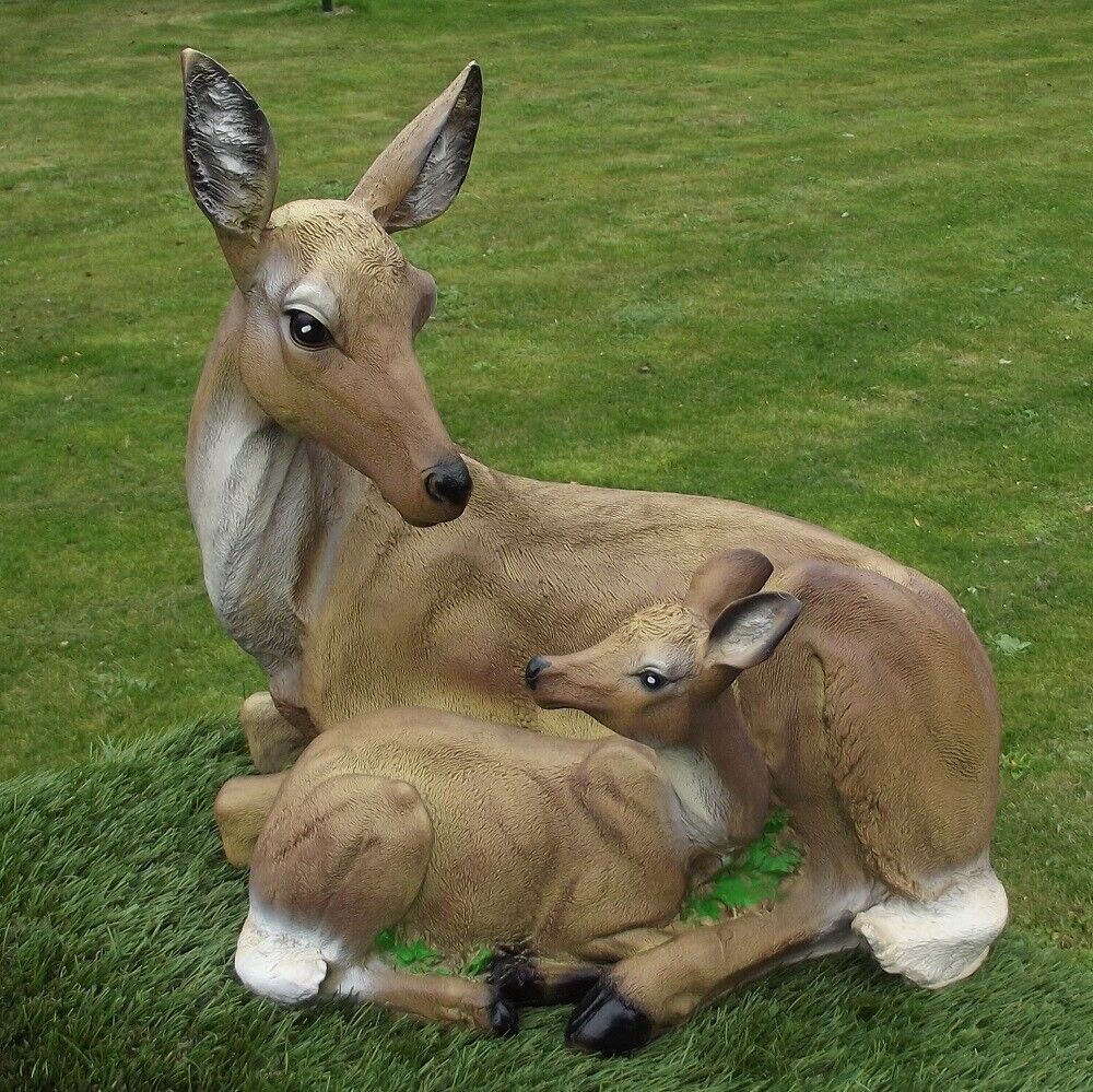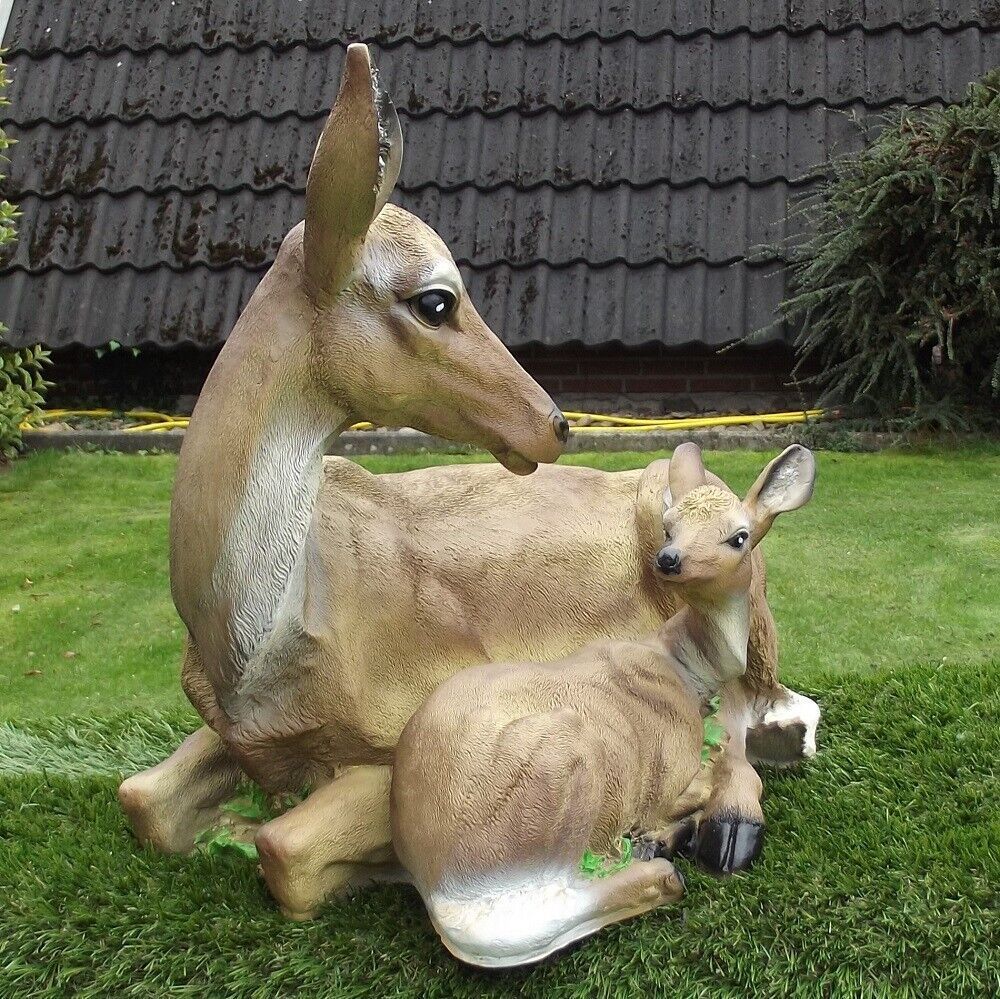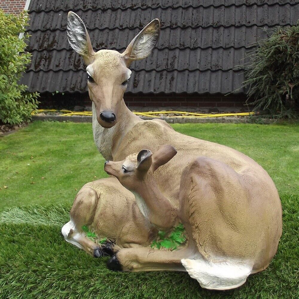 Gartenfigur Reh mit Kitz ca. 40cm 2623 Rehkitz Haus Garten