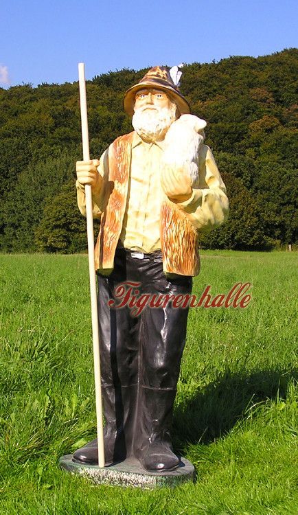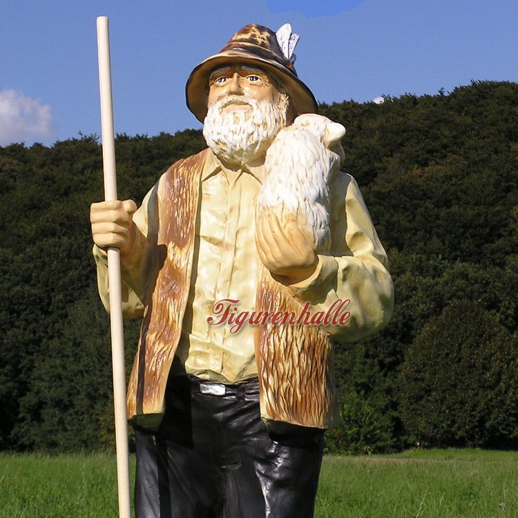 Gartenfigur Schäfer Schaf Deko Garten Figur Statue Skulptur Berg Alm lebensgroß