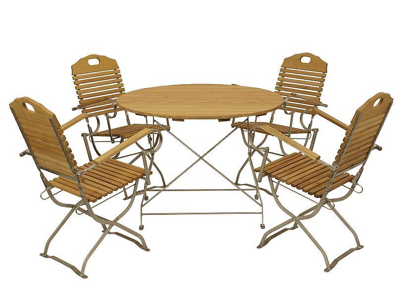 Gartengarnitur Biergartengarnitur SitzgruppeTisch Sessel 5-teilig, Flachstahl