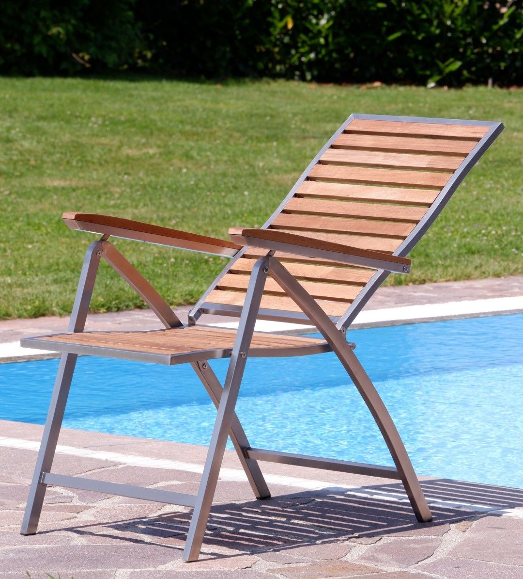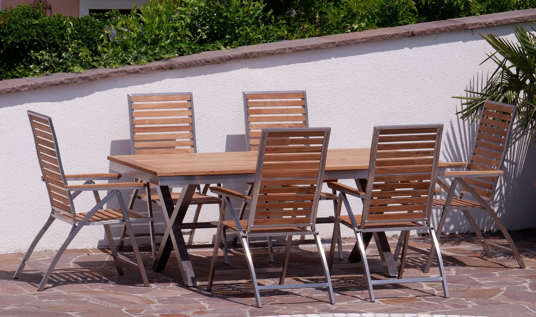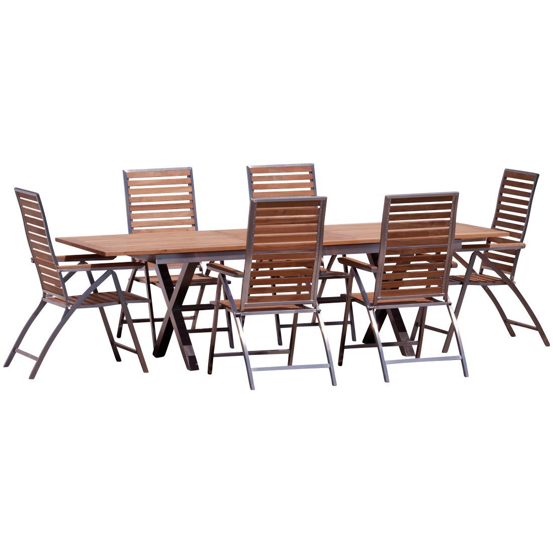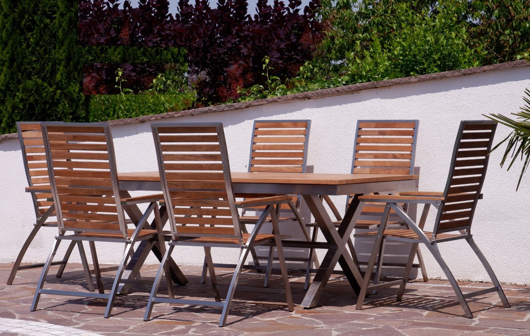 Gartengarnitur Edelstahl Teak Set Ausziehtisch 200-260x100cm + 6 Teak Hochlehner