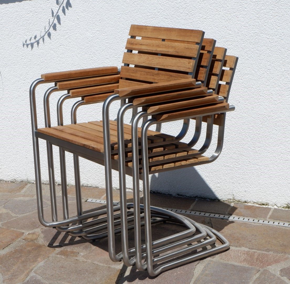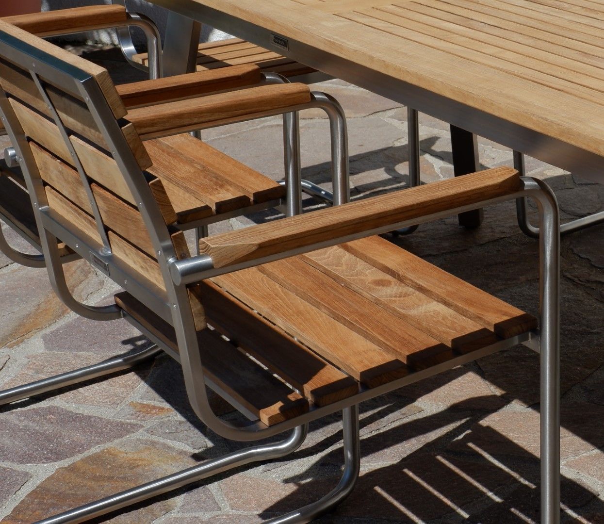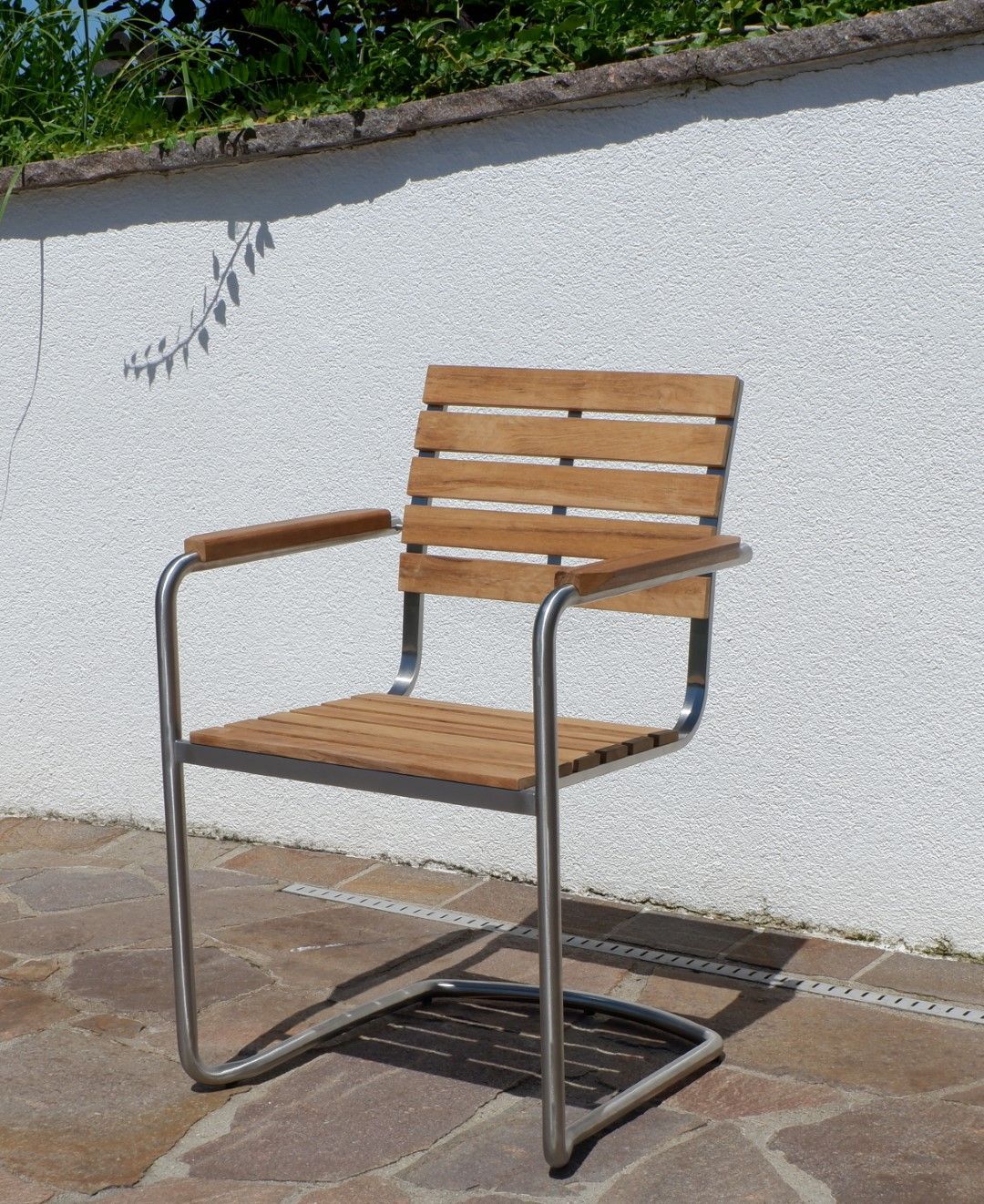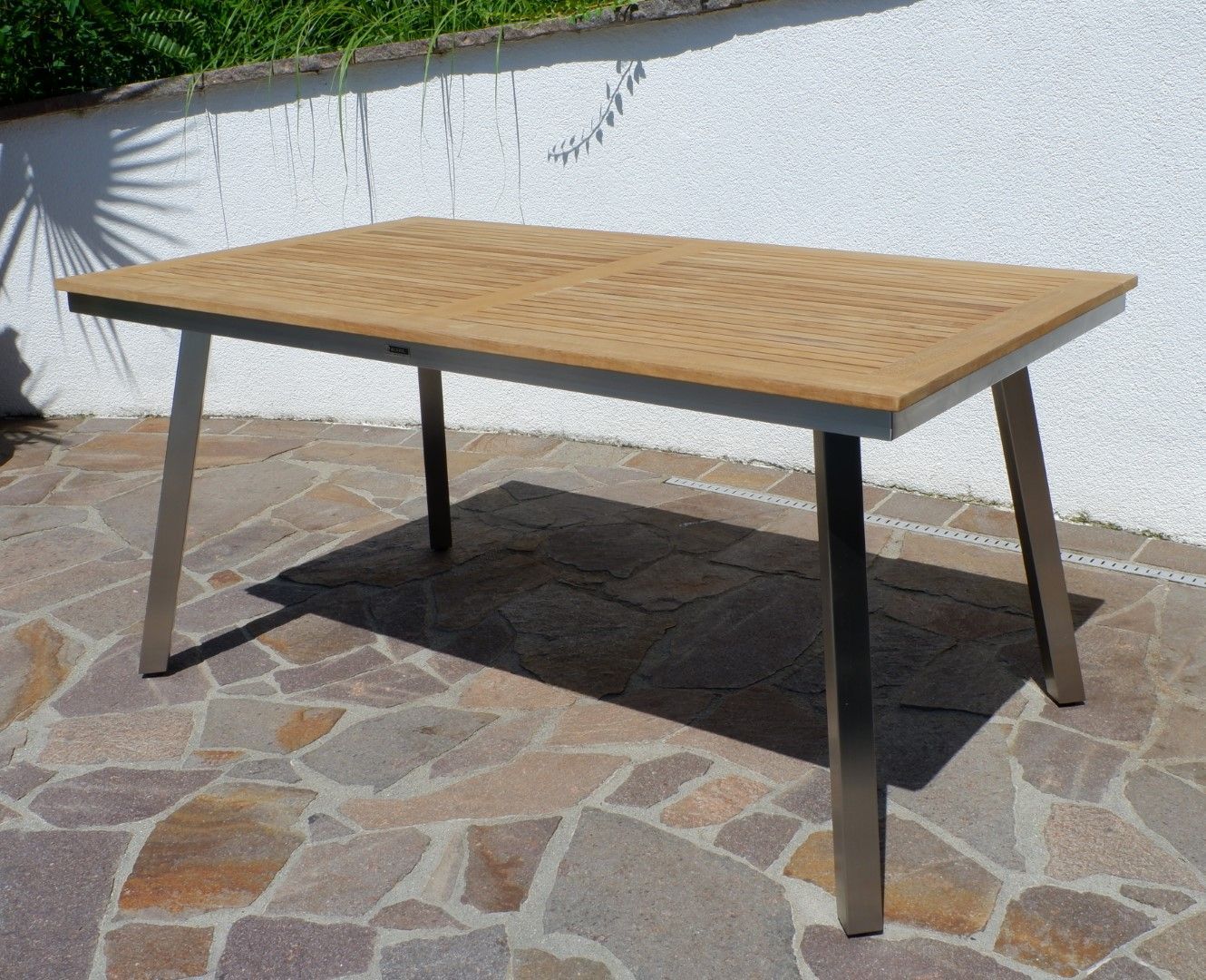 Gartengarnitur Edelstahl Teak Set: Tisch 160x90 cm + 6 Schwingsessel A-Grade