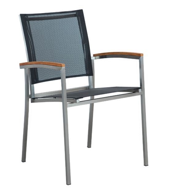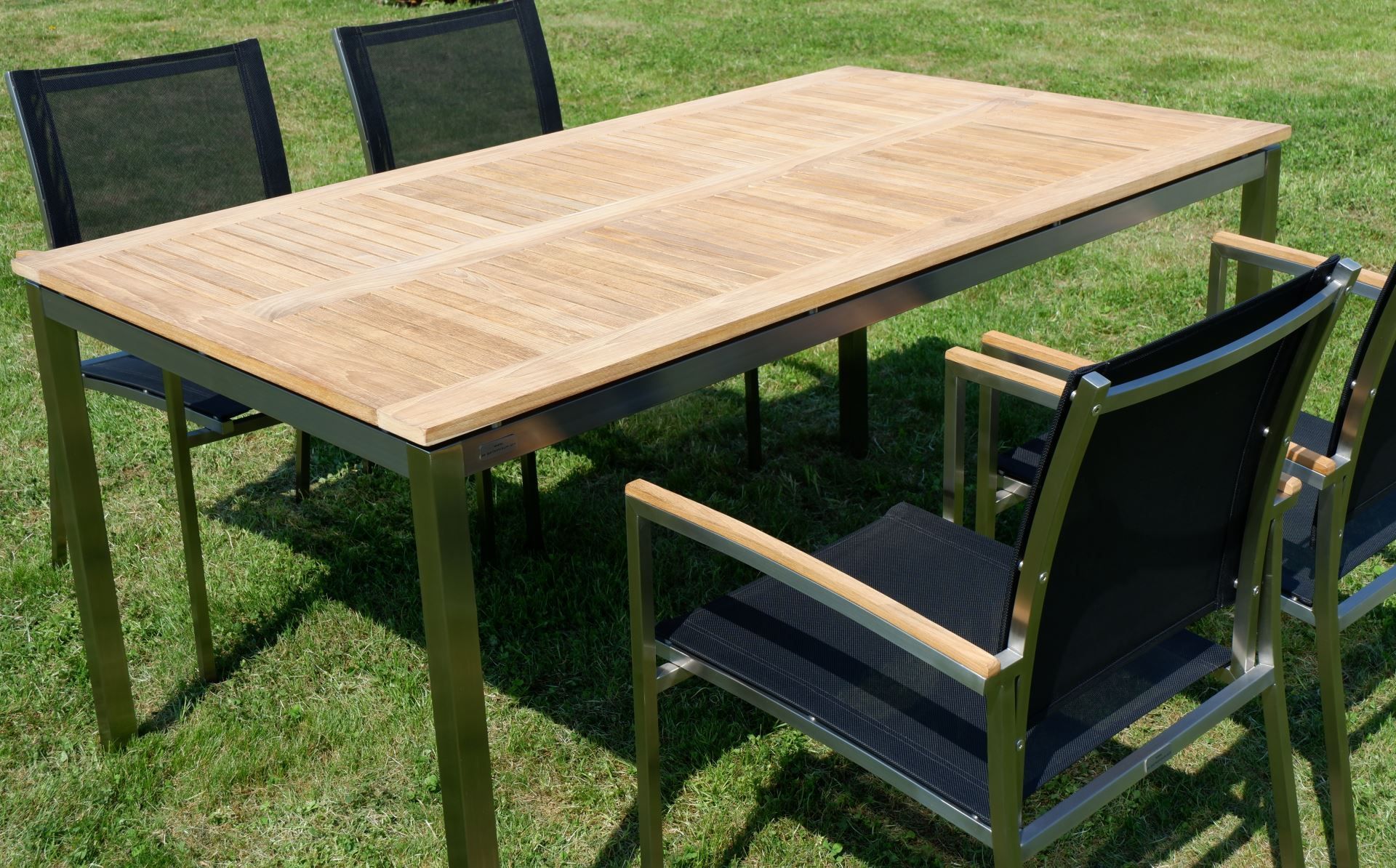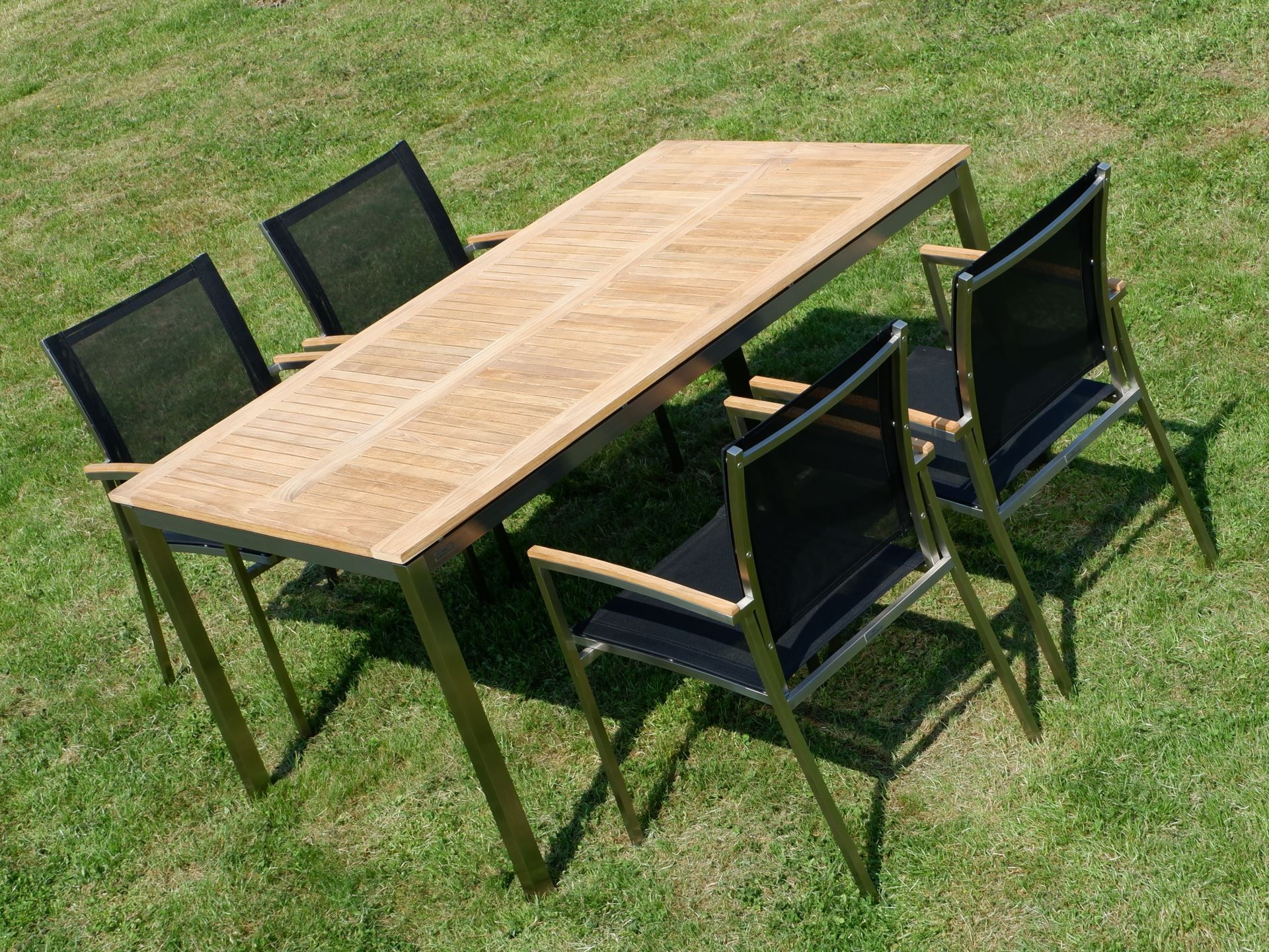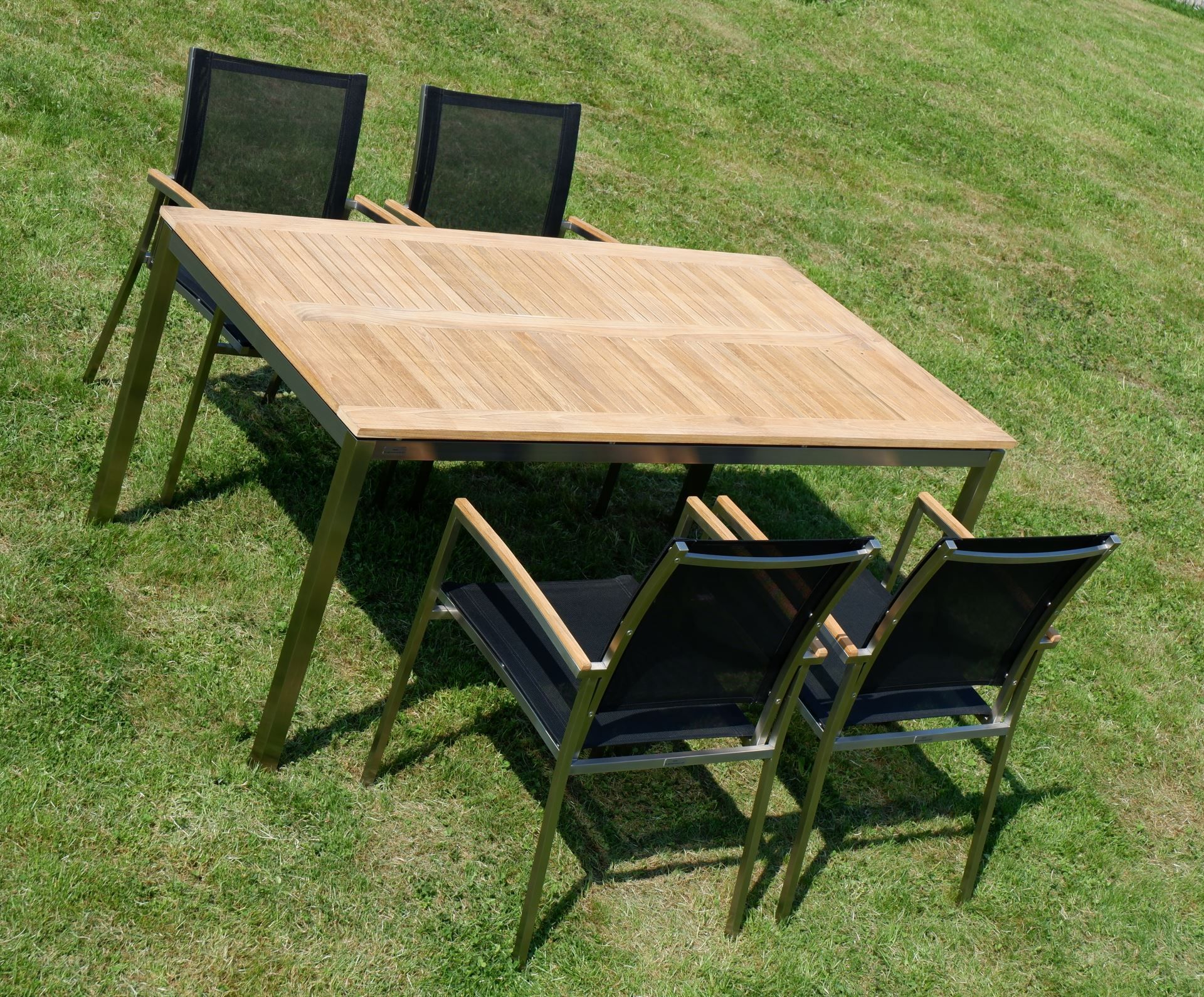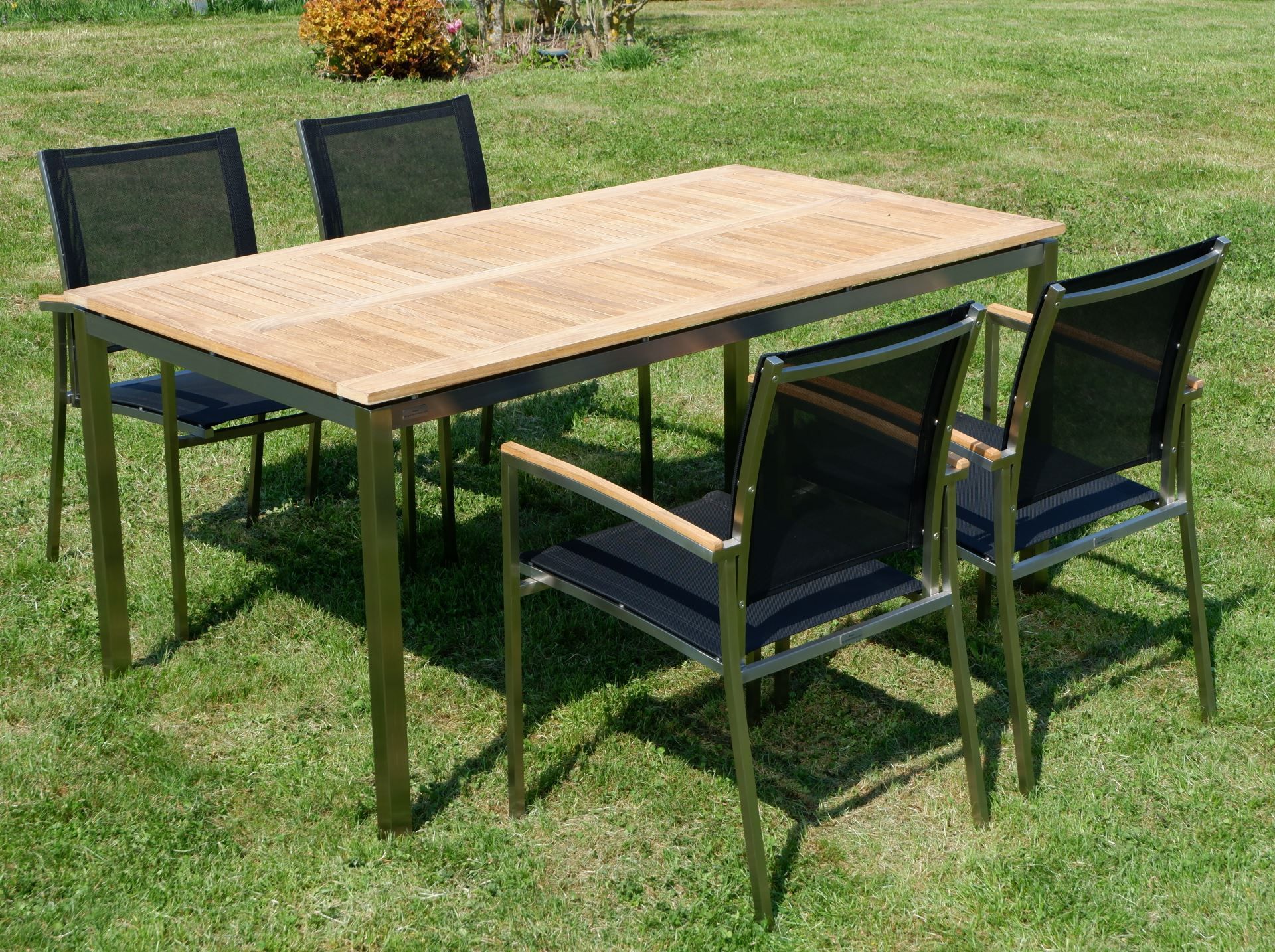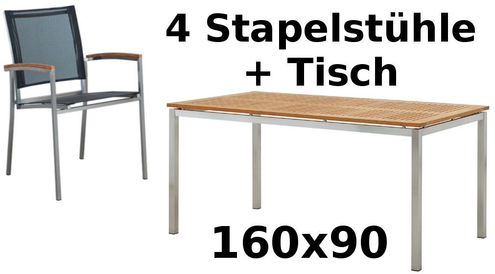 ASS Gartengarnitur Edelstahl Teak Tisch 160x90 cm + 4 Sessel Batyline KUBA-SCHWARZ