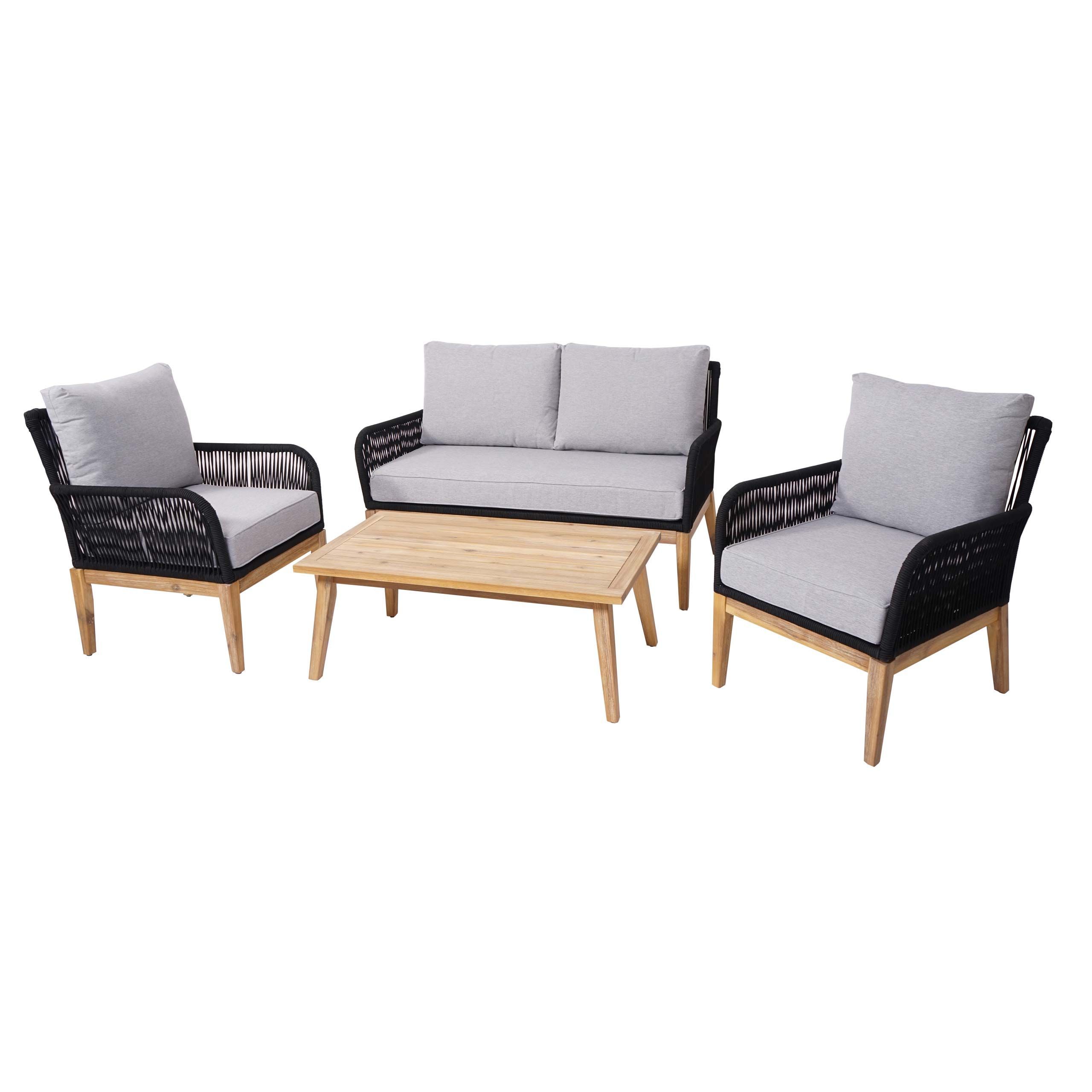 Mendler Gartengarnitur HWC-H58, Lounge-Set Sofa Sitzgruppe, Geflecht Holz Akazie Spun Poly