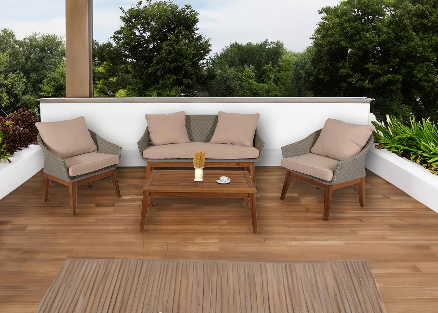 Mendler Gartengarnitur HWC-N37, Sofa Sitzgruppe, Poly-Rattan Holz Akazie