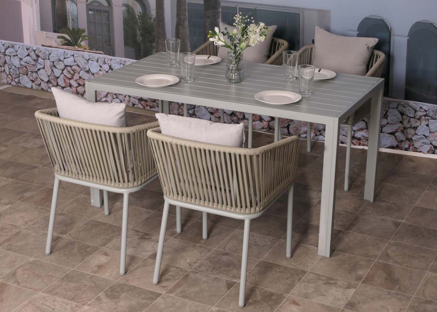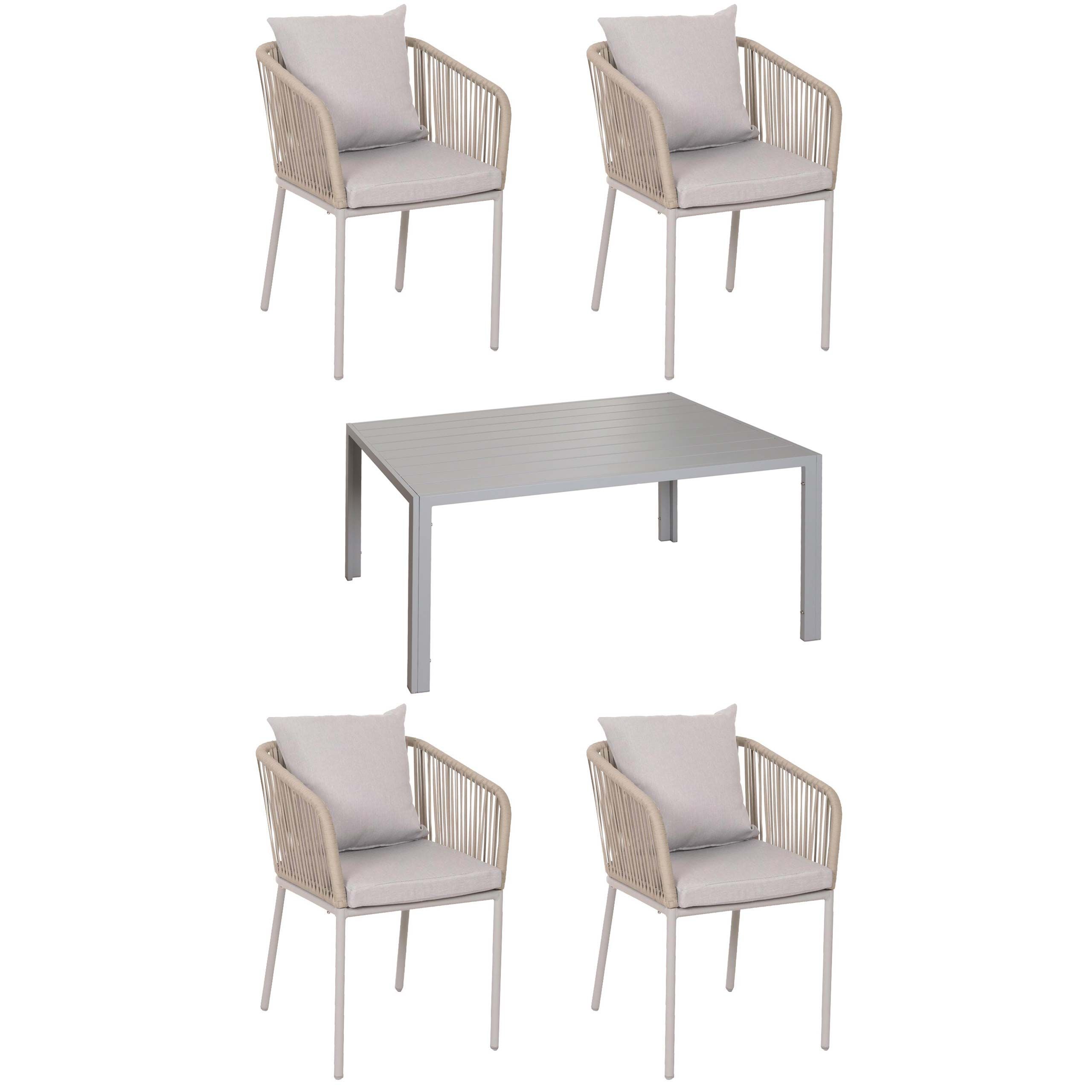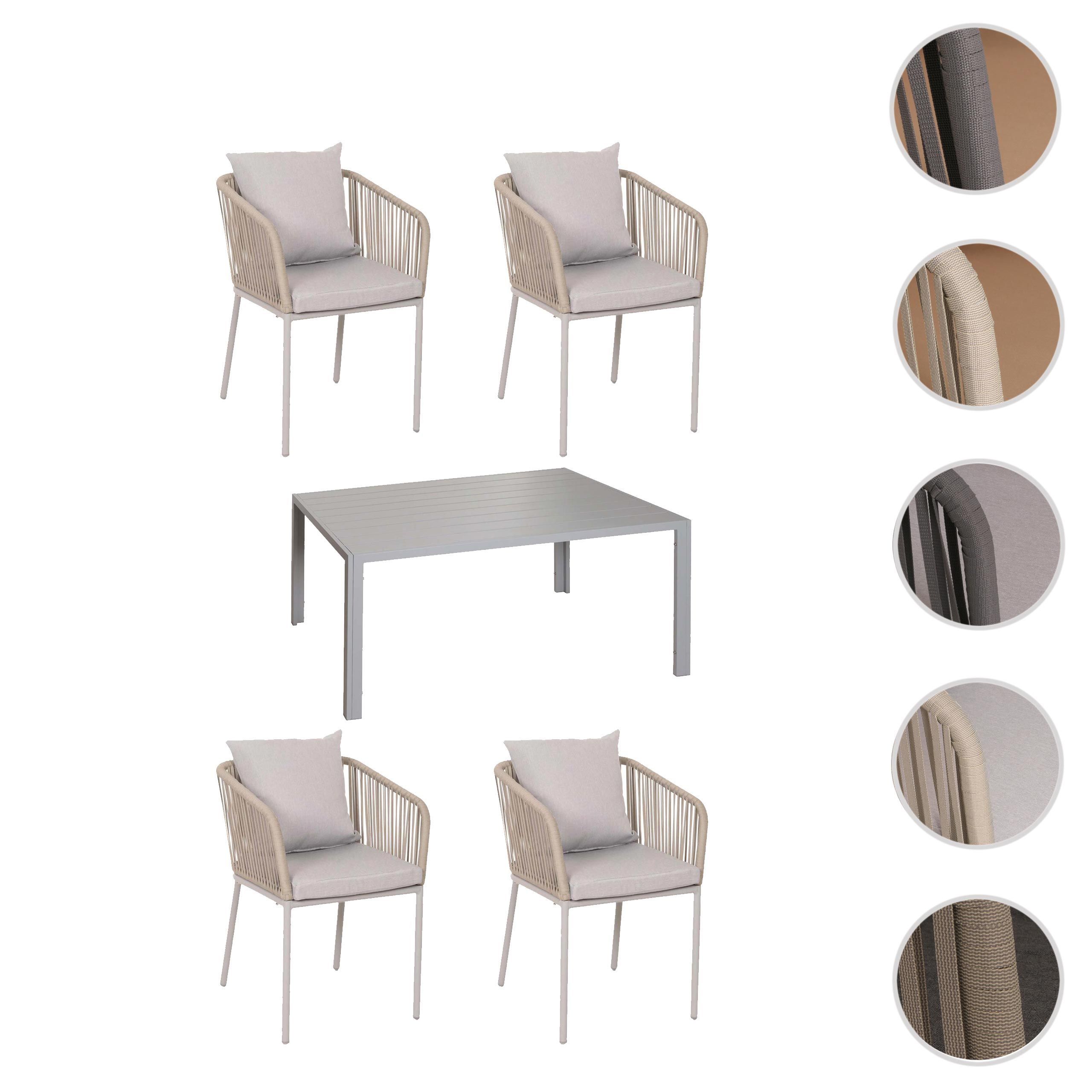 Mendler Gartengarnitur HWC-N41, Tisch+4xStuhl, wetterfest Alu 140x80cm, Seilgeflecht Rope