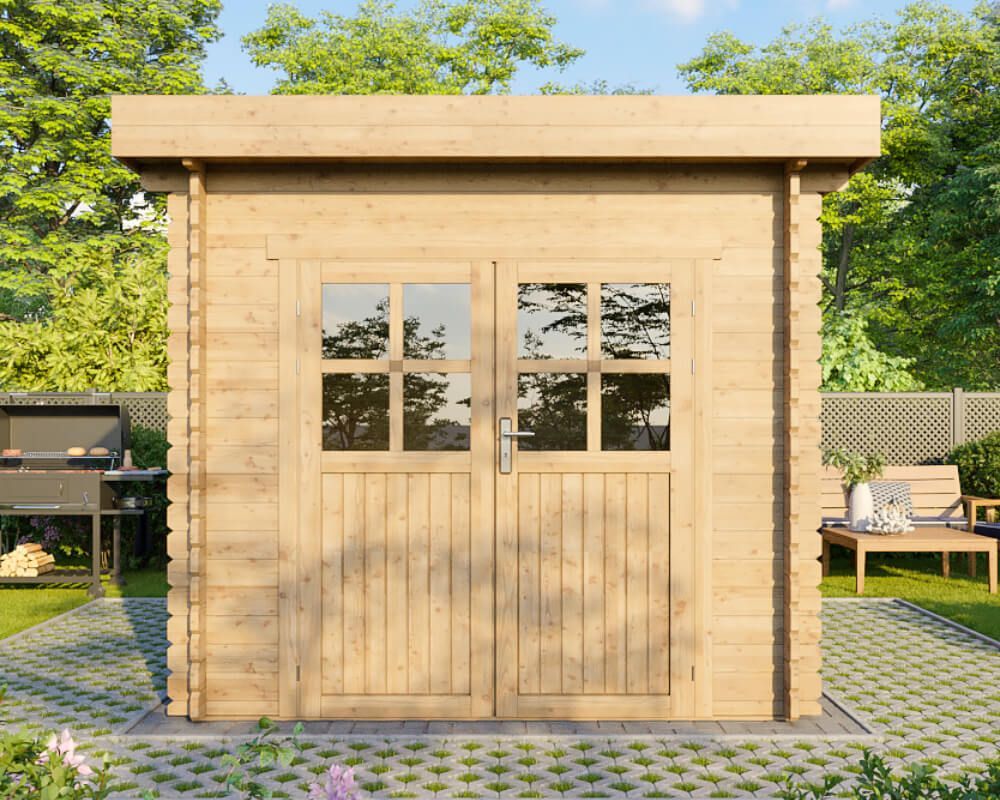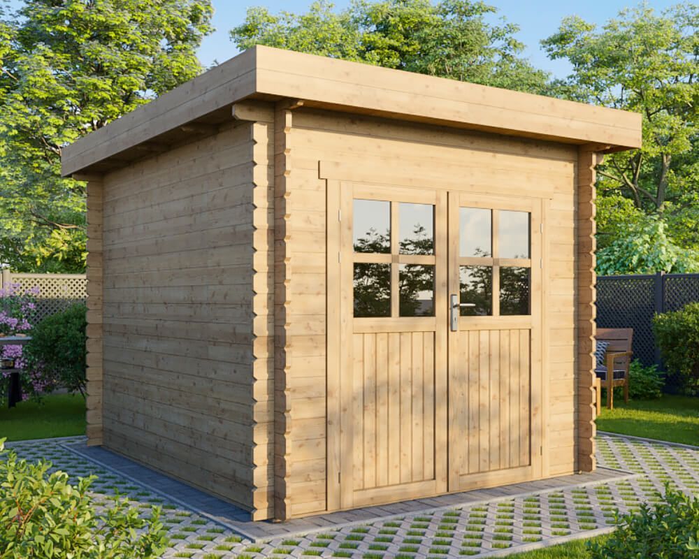 Gartenhaus 2,5x3m Holz natur 28mm Flachdach Blockhaus Schuppen ALL IN