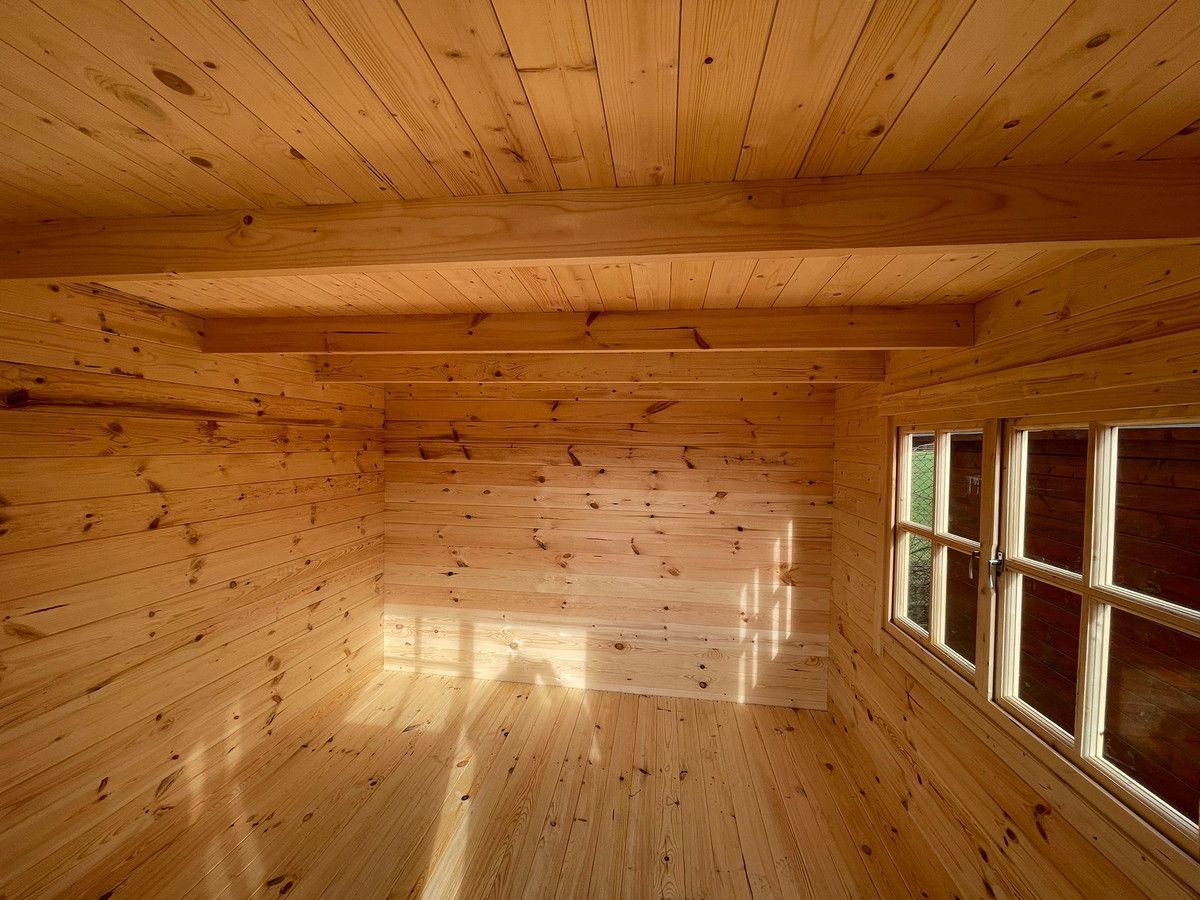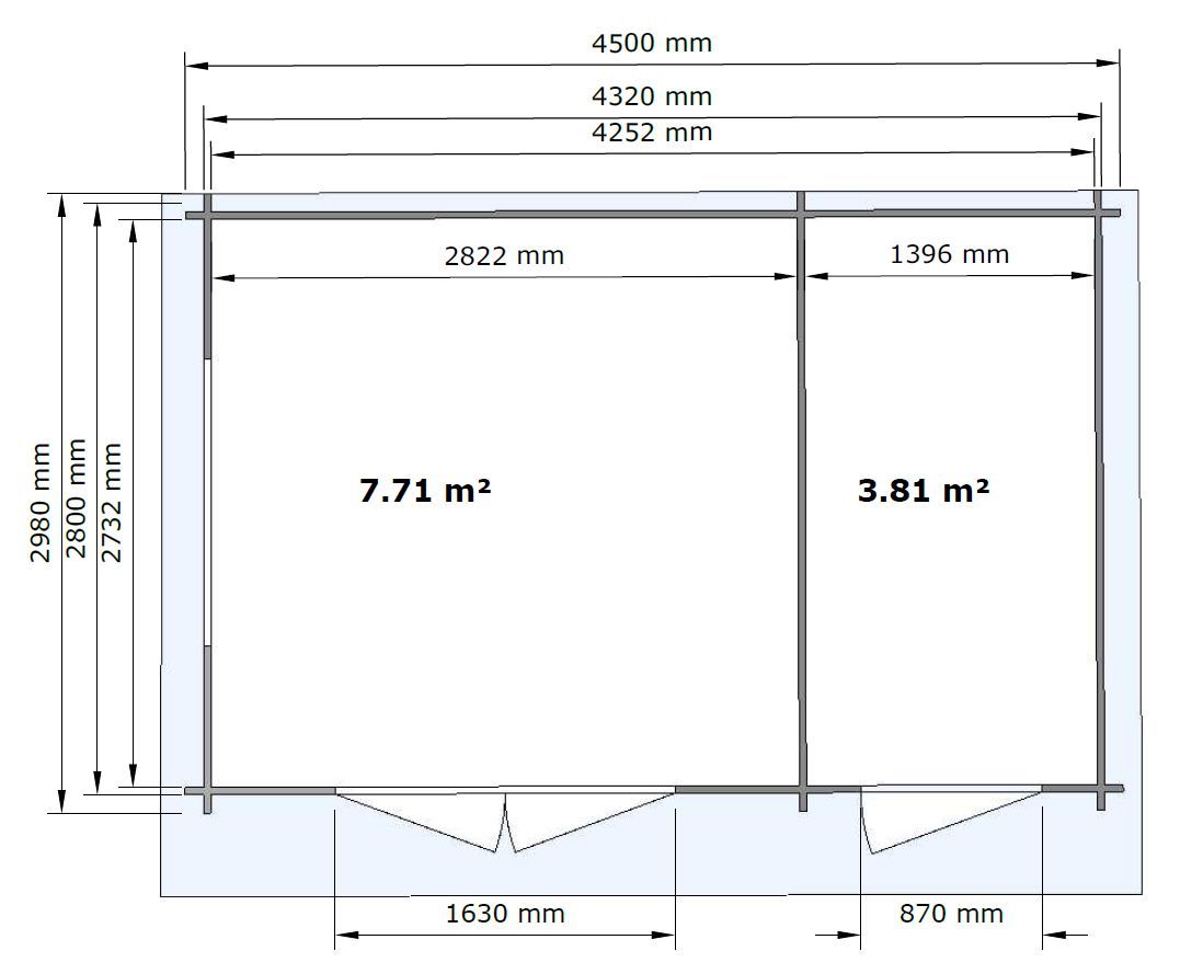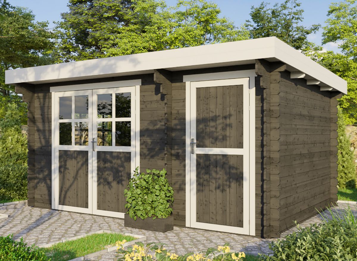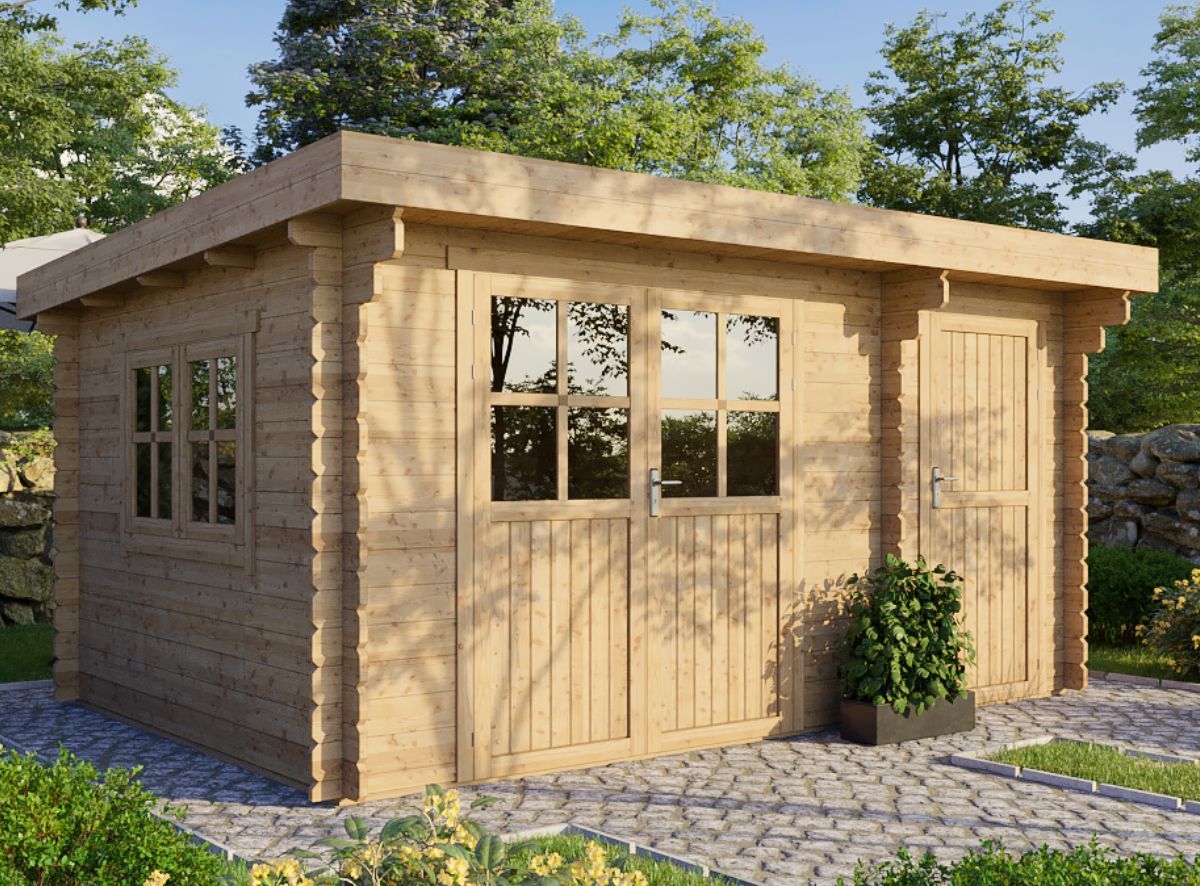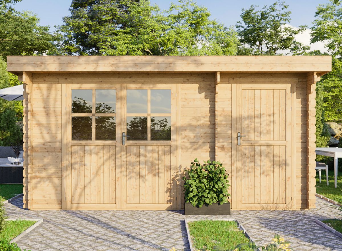 Gartenhaus 4,5x3m Holz natur 35mm mit Fußboden 2 Räume Flachdach ALL IN