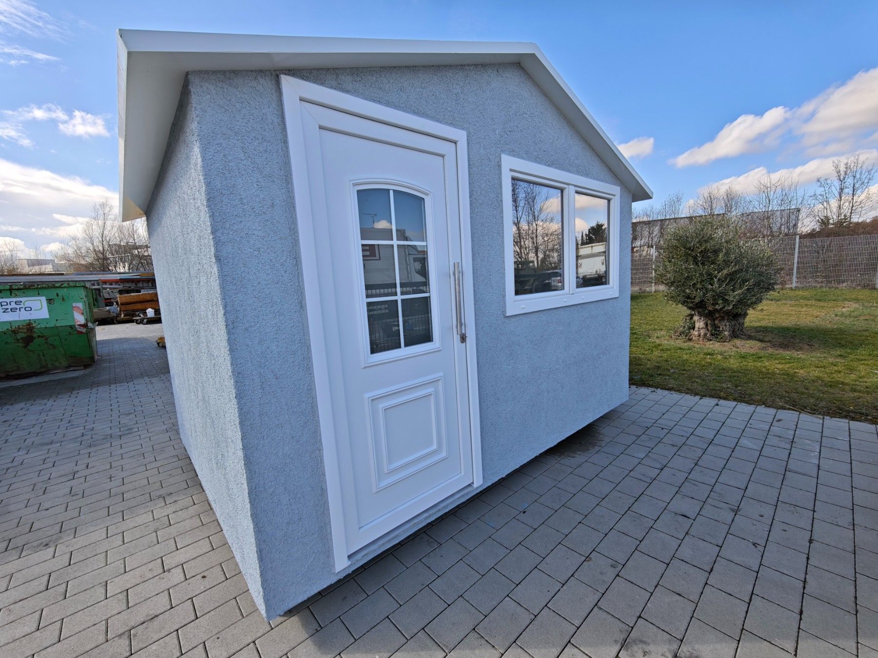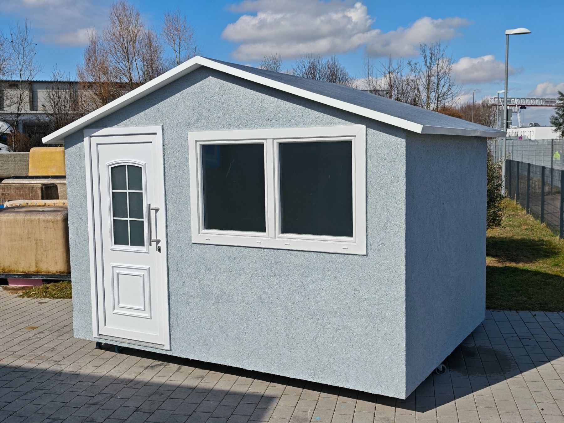 Ich verkaufe hier ein neues Gartenhaus aus GFK mit dem Maß 360x270x270cm Vollisoliert mit PUR Hartschaum Wandstärke 50mm GFK Rauputz in hellgrau Gewicht ca. 900 Kg Türe mit Einbruchschutz Fenster mit Einbruchschutz