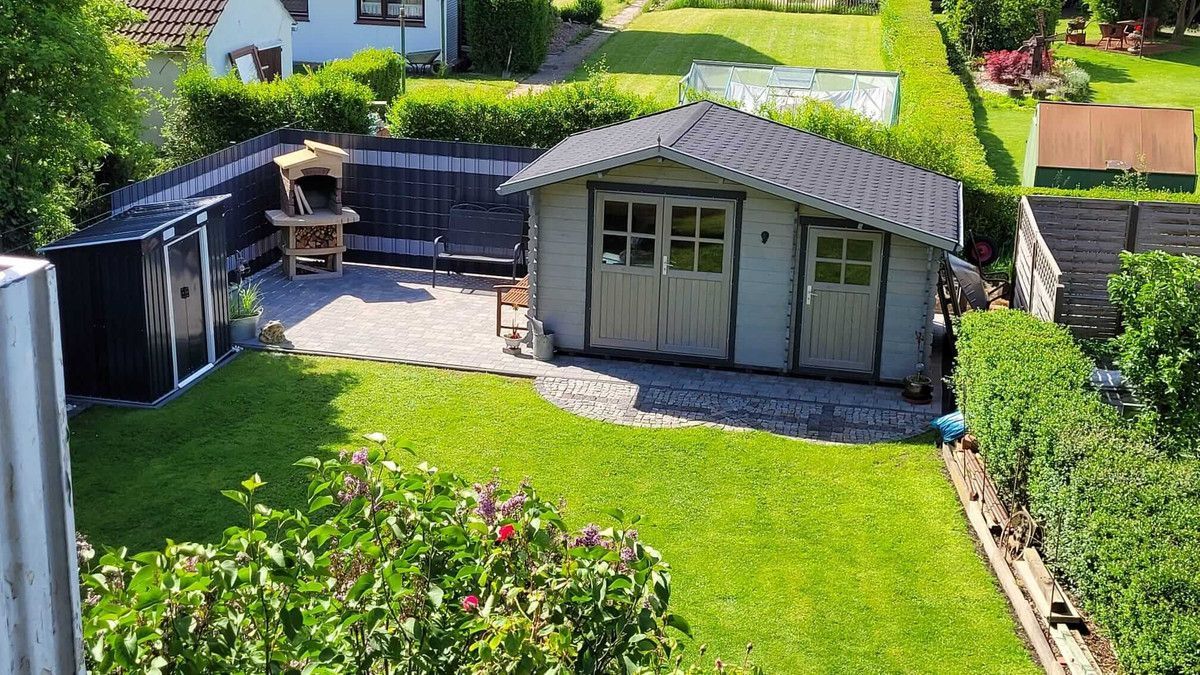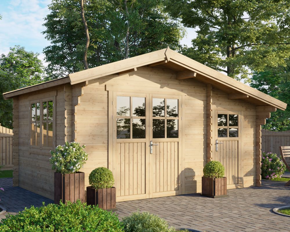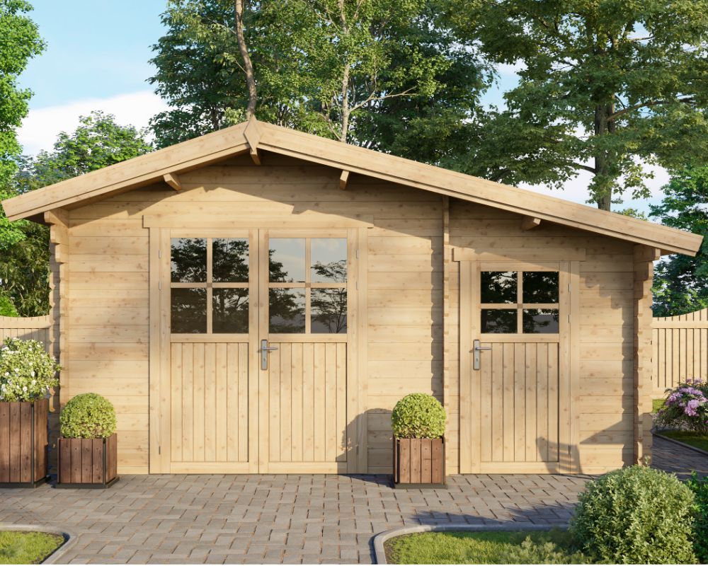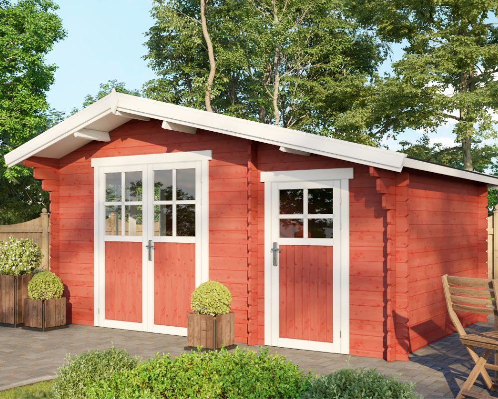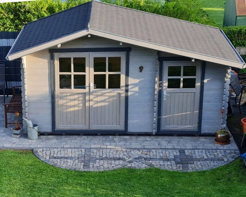 Gartenhaus Gerätehaus Holzhaus Blockhaus 4,5x3m mit 2 Räumen inkl. Fußboden ALL IN