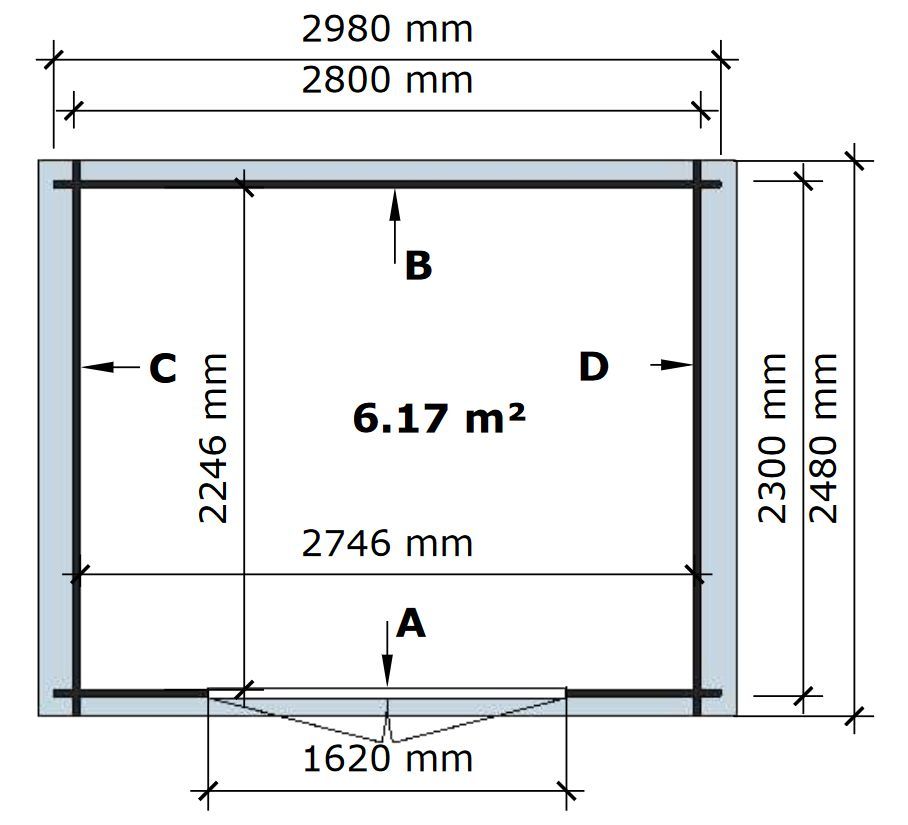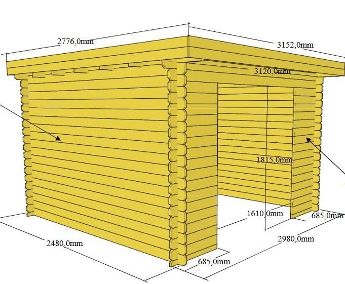 Gerätehaus London 300 x 250 cm mit 28 mm Blockbohlen, naturbelassen, inklusive Fußboden und Dach