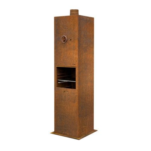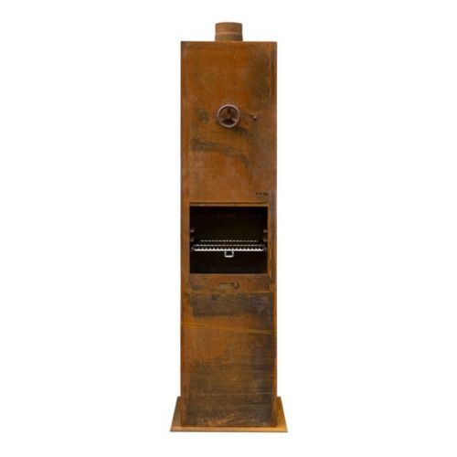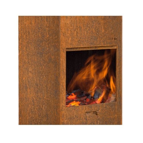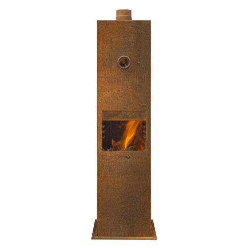 Zwei Meter hoch und dabei schlanke fünfzig Zentimeter breit: Diesen Maßen verdankt der Gartenkamin Viktor seine außergewöhnliche Erscheinung. Der Kamin ist ein besonderer Hingucker mit Vintage-Charme und besticht durch seine klare Formsprache.