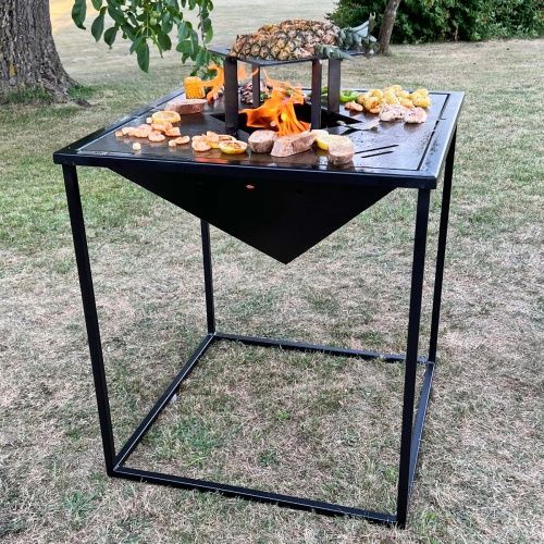 Gartenkamin Plancha MEROE mit Grillaufsatz Schwarz