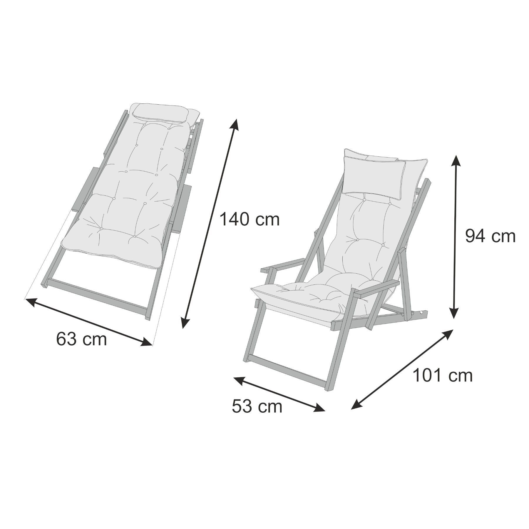 Gartenkissen, Kissen für Gartenliege mit Rückenlehne 140x63cm