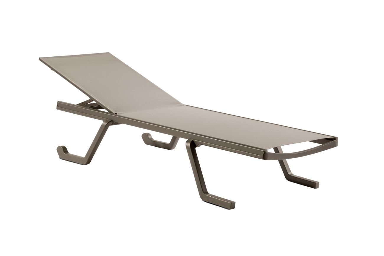 Gartenliege Podio von Brafab aus Resin und Textilene, modern, Beige, mit Rollen