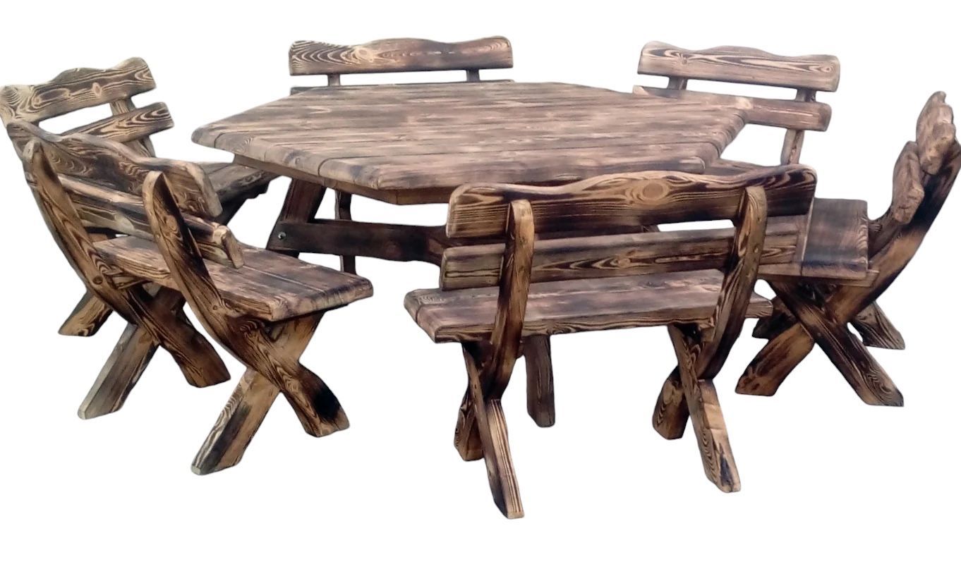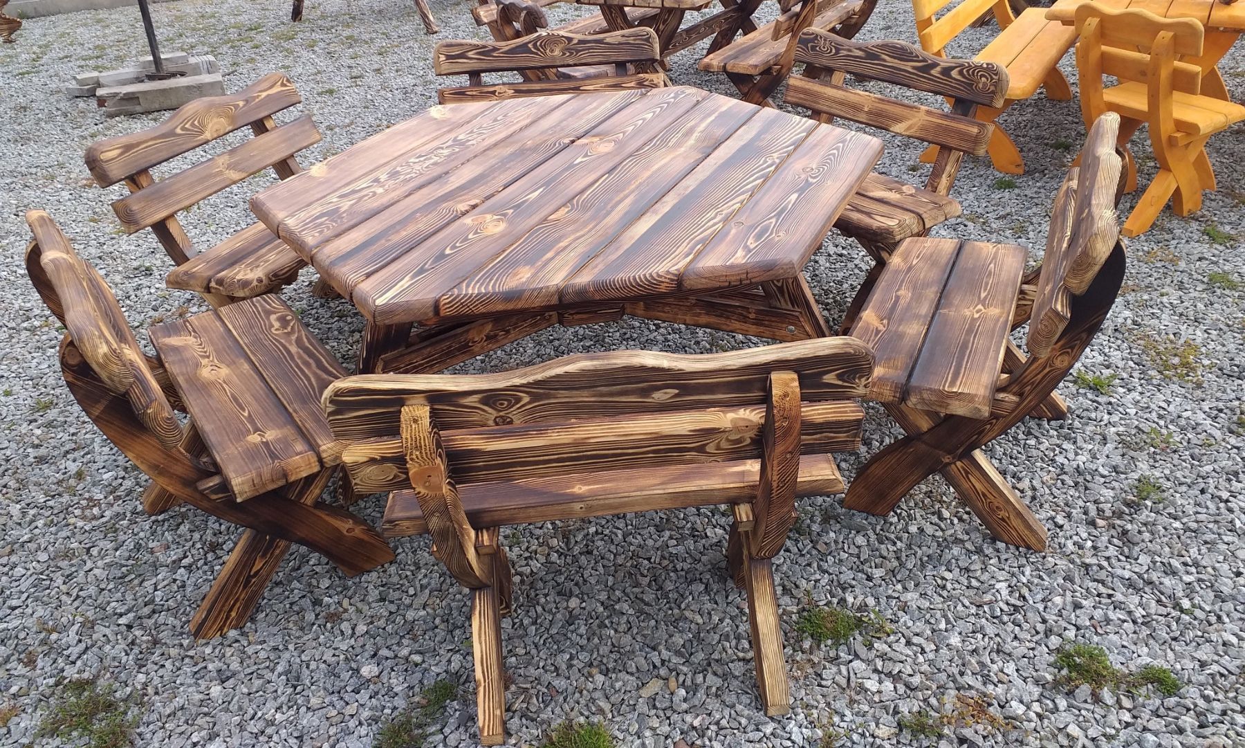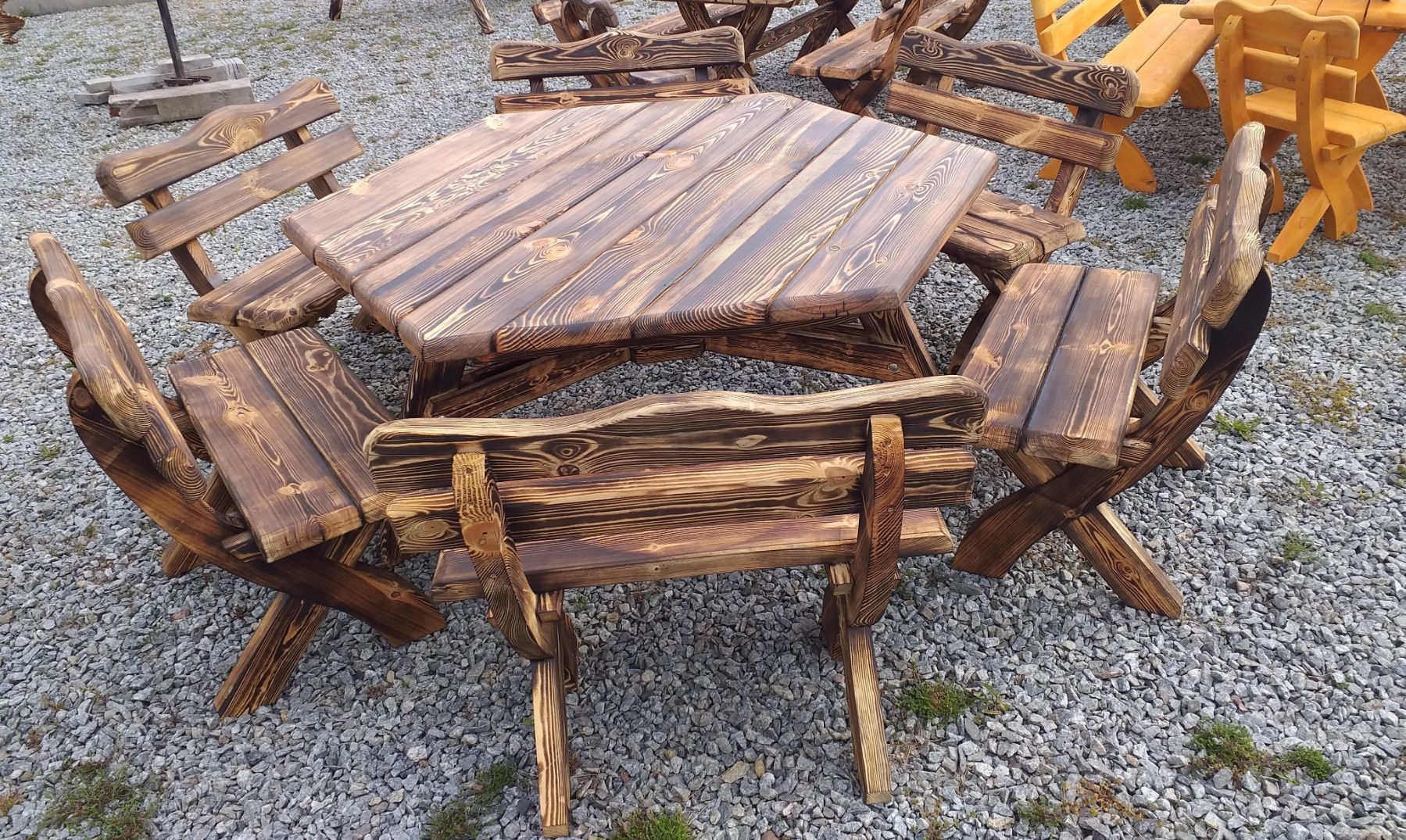 Gartenmöbel , Holzgartenmöbel , SZE-OP, Sitzgruppe für 12 Personen , Farbe geflammt