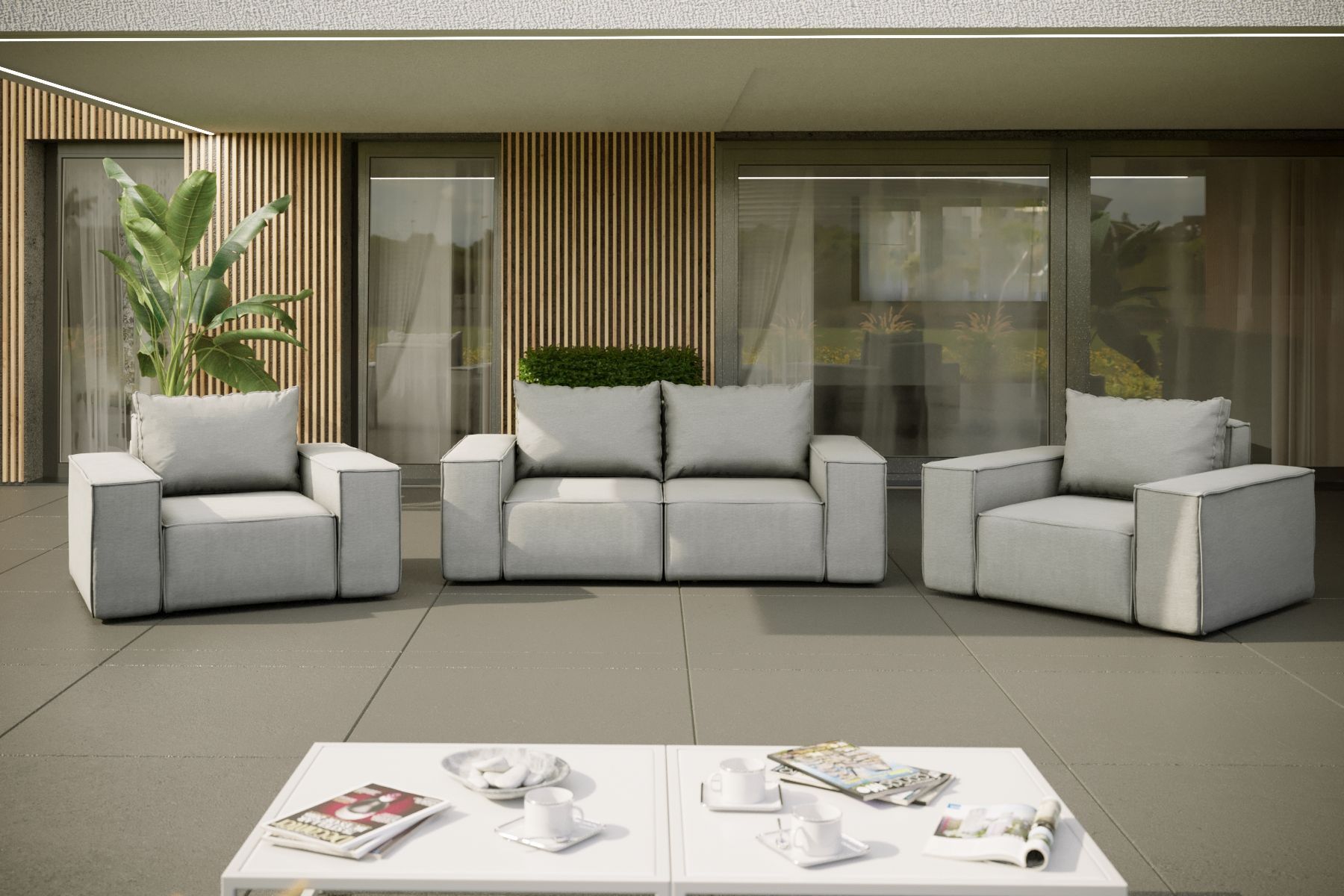 Gartenmöbel-Set Gardent 2-1-1 in wetterfester Stoff NXL Hellgrau