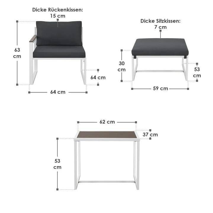 Sofa Gartenmöbel Set Bari B-WARE Gartenlounge aus Metall & Polywood Artikelnummer: 300881 B-WARE mit 12 Monate Gewährleistung Bitte haben Sie Verständnis, dass wir keine Möglichkeit haben Original-Fotos einzelner Produkte zu erstellen. Technische Daten: Marke: Juskys Material Gestell: Stahl (pul... Mehr